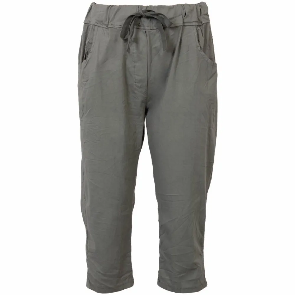 Dame knickers med elastik og bindebånd i linningen. Bukserne har 2 sidelommer samt 2 lommer bagpå.