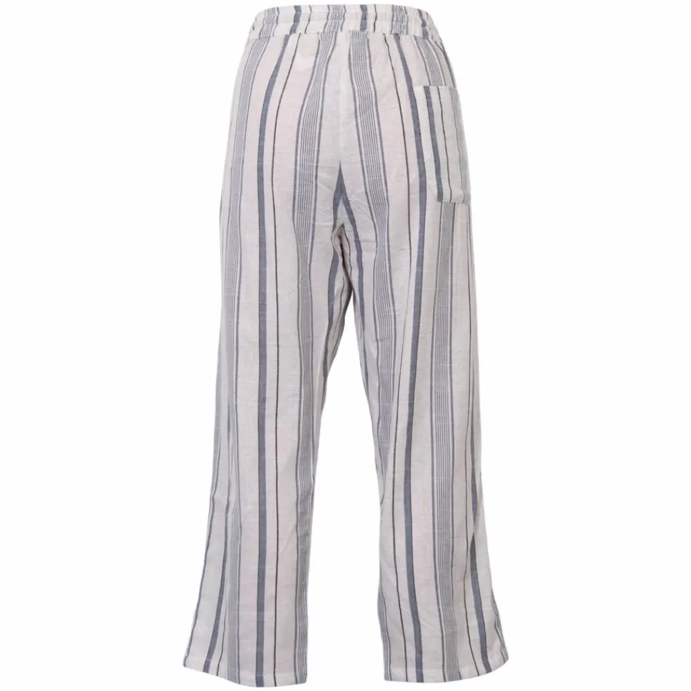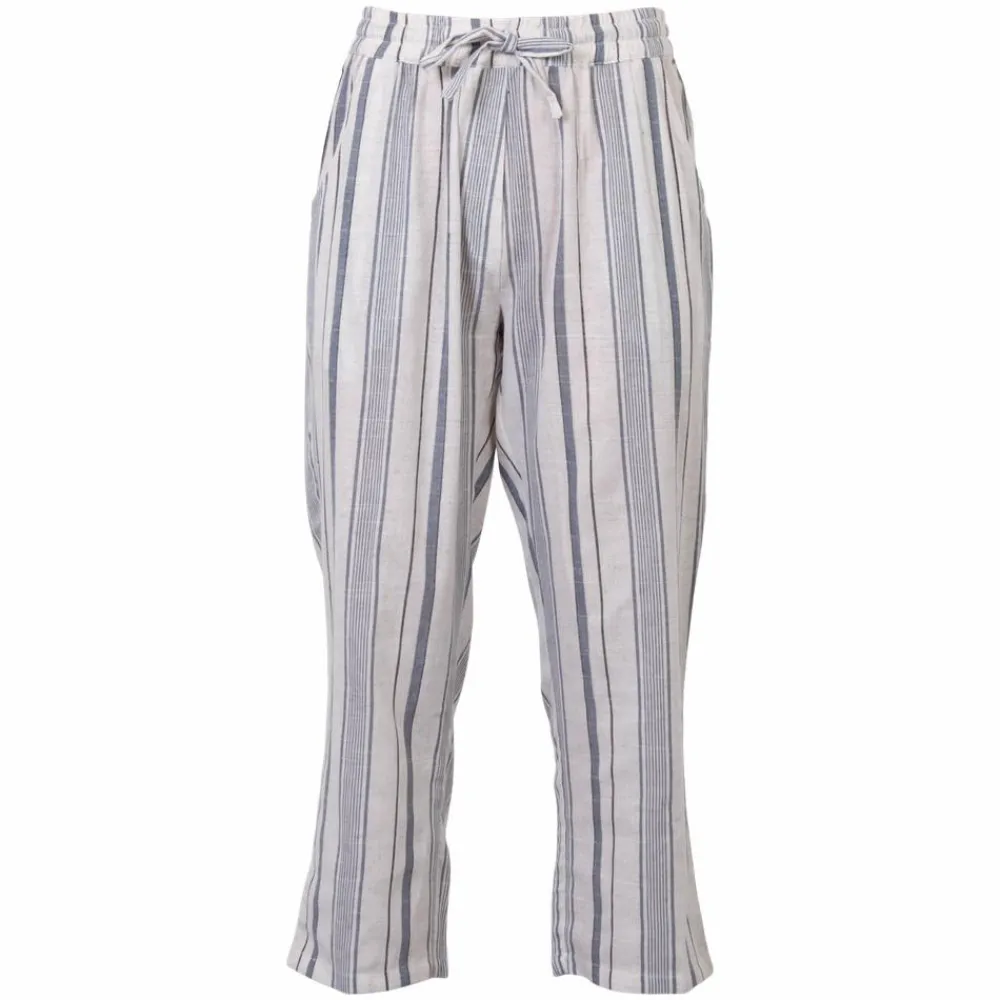 Lette og luftige capri bukser i stribet design. Bukserne er med elastik og snøre i taljen, sidelommer samt én baglomme.