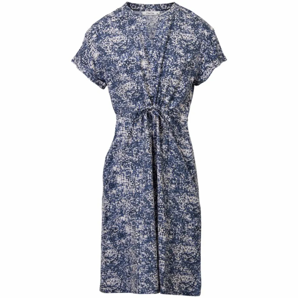 Cha Cha damekjole med bindebånd. Kjolen har sidelommer og korte ærmer, samt v-halsudskæring.