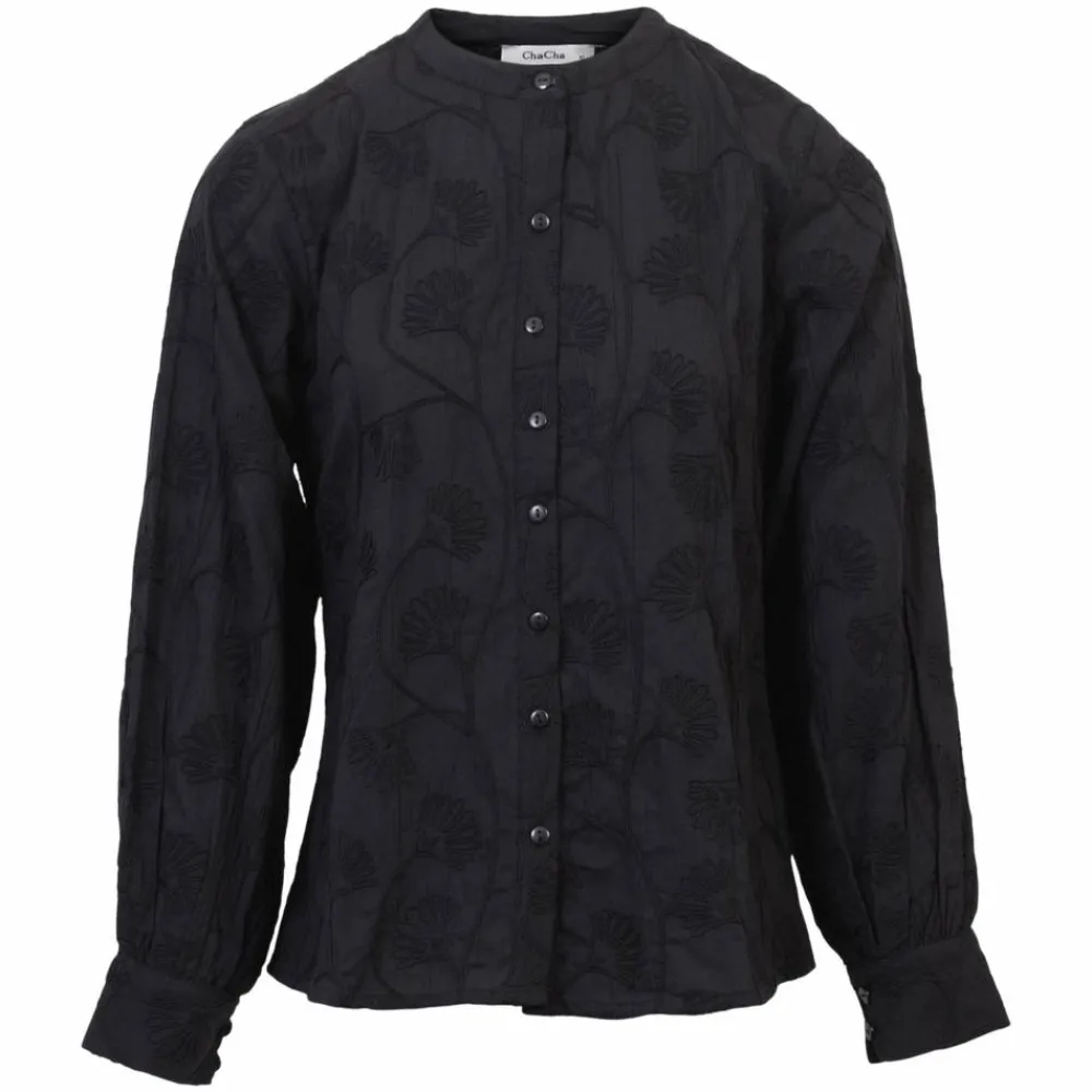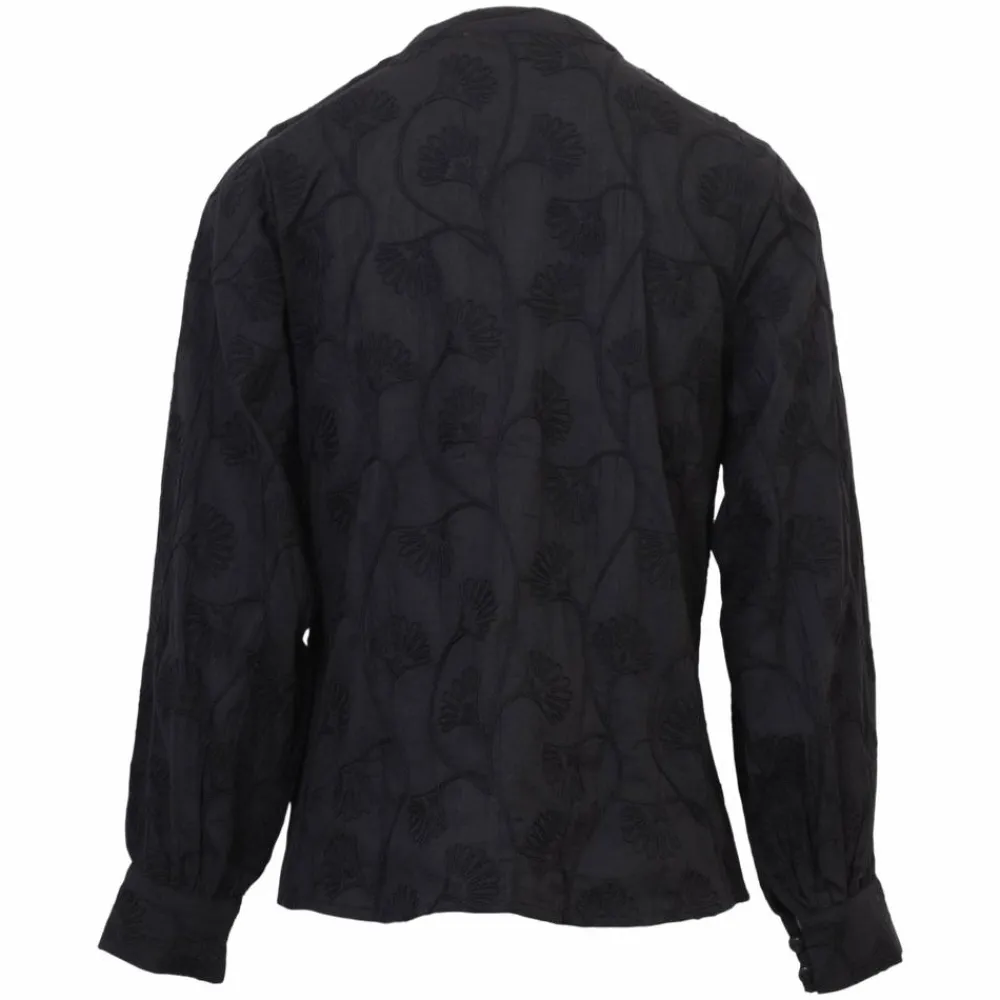 En kraveløs skjorte i sort, der samler garderoben med et roligt udtryk. Detaljeret tone-i-tone broderi giver dybde til stoffet, mens den fulde knaplukning og de lange ærmer med enkle manchetter skaber et pænt, afslappet fald. 100% bomuld føles blødt og lader huden ånde. Se flere bluser og skjorter.