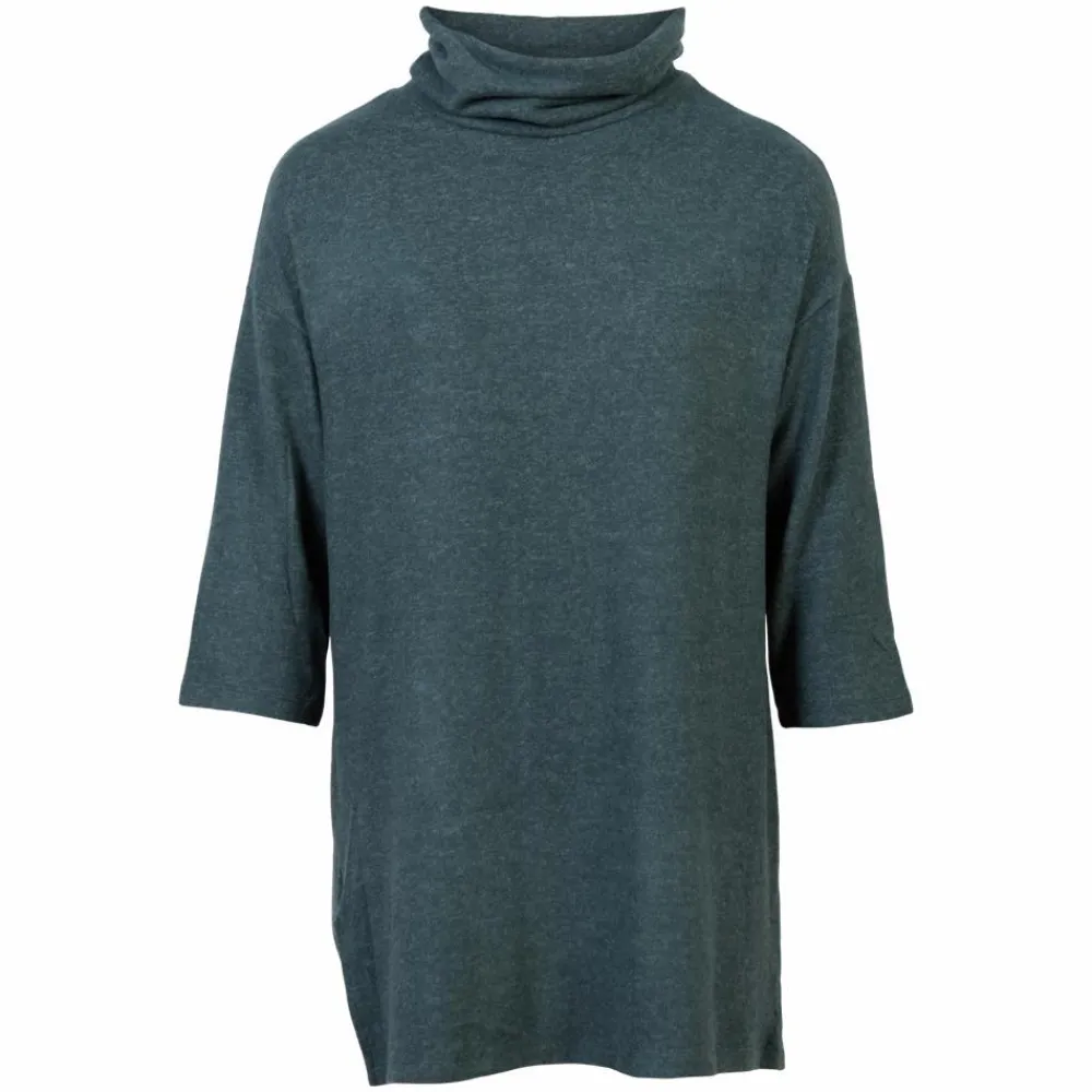 Lang ChaCha dame strikbluse med slids i siderne, halvlange ærmer og rullekrave. Blød og varm.