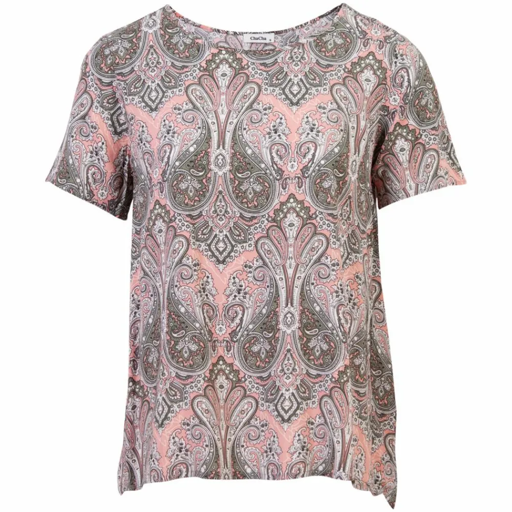 ChaCha dame t-shirt. T-shirten har all-over motiv, samt rund halsudskæring. T-shirten er længere bagpå end foran.