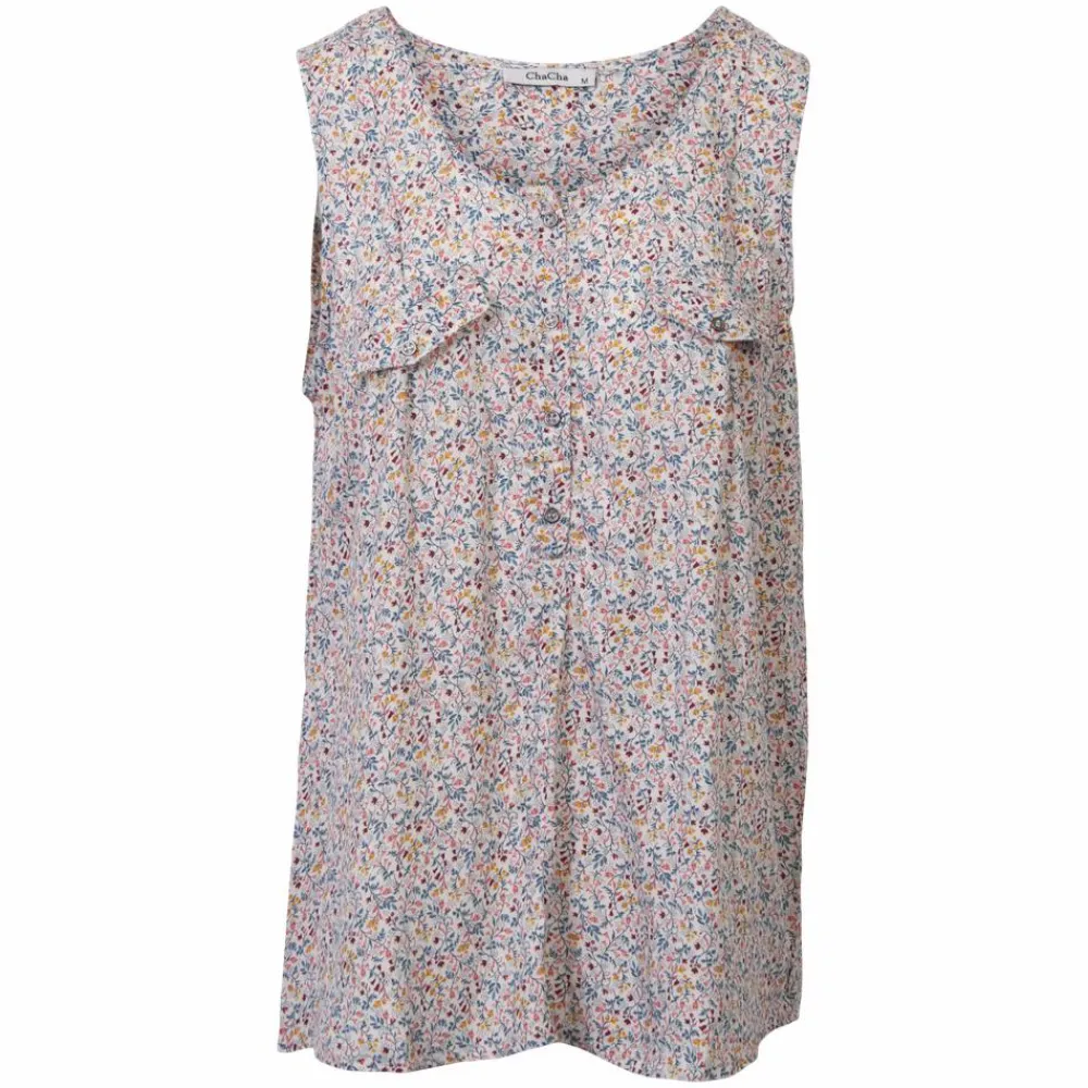 Cha Cha dame top. Smart top med brede stropper. Toppen har pyntelommer på brystet, samt knappelukning ved den runde halsudskæring.