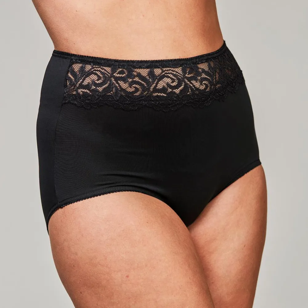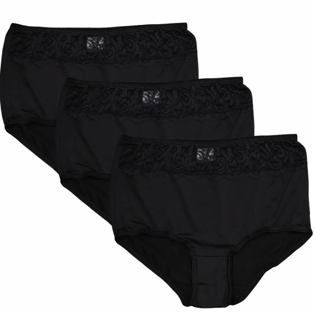 Crossbow 3-pak dame Maxi trusser. Flotte trusser til kvinder, med en bred blonde kant. Modellen er yderst strækbar og har elastik i kanterne, som gør dem behagelige at have på.