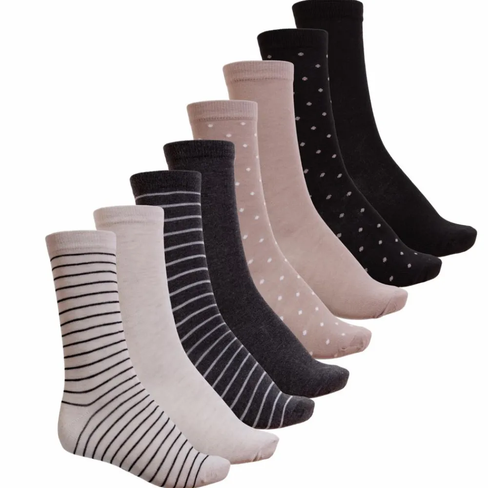 Crossbow dame strømper 8-pak. Strømperne har elastik i toppen, som gør at de tilpasser om benet.