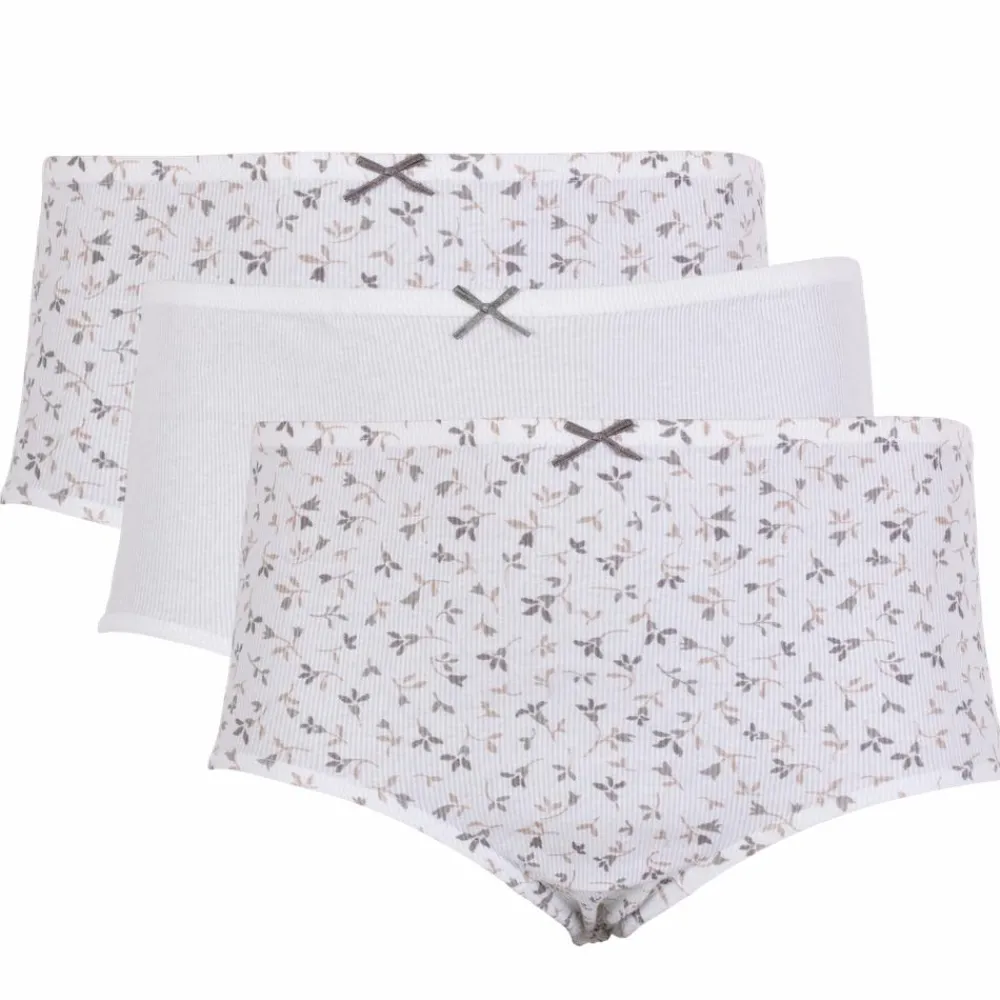 Højtaljede trusser med blomsterprint og en lille sløjfe. 2 stk. med blomsterprint og 1 stk. i hvid.