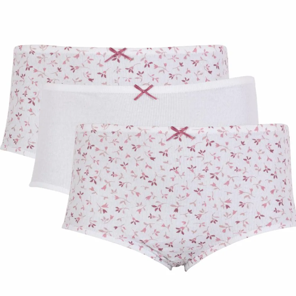 Højtaljede trusser med blomsterprint og en lille sløjfe. 2 stk. med blomsterprint og 1 stk. i hvid.
