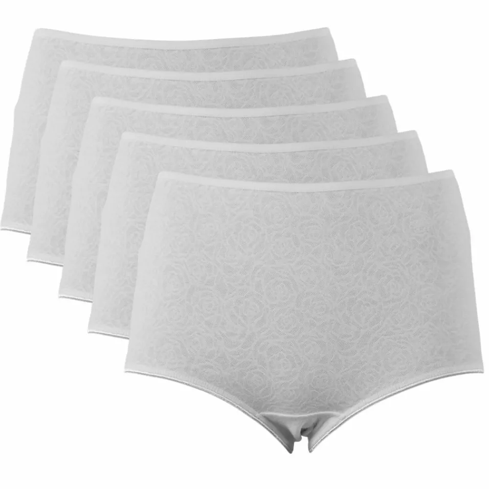 Crossbow dame 5-pak trusser i bomuld med blomster struktur og med elastik i taljen. De flotte dametrusser giver god støtte til mave og til bagdelen, og med den fine blomsterstruktur får du nogle virkeligt flotte og elegante dametrusser med maksimal komfort.