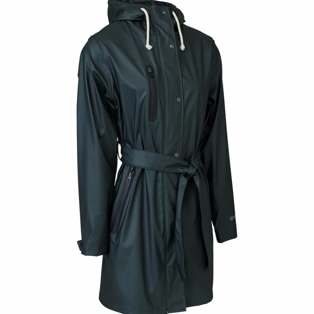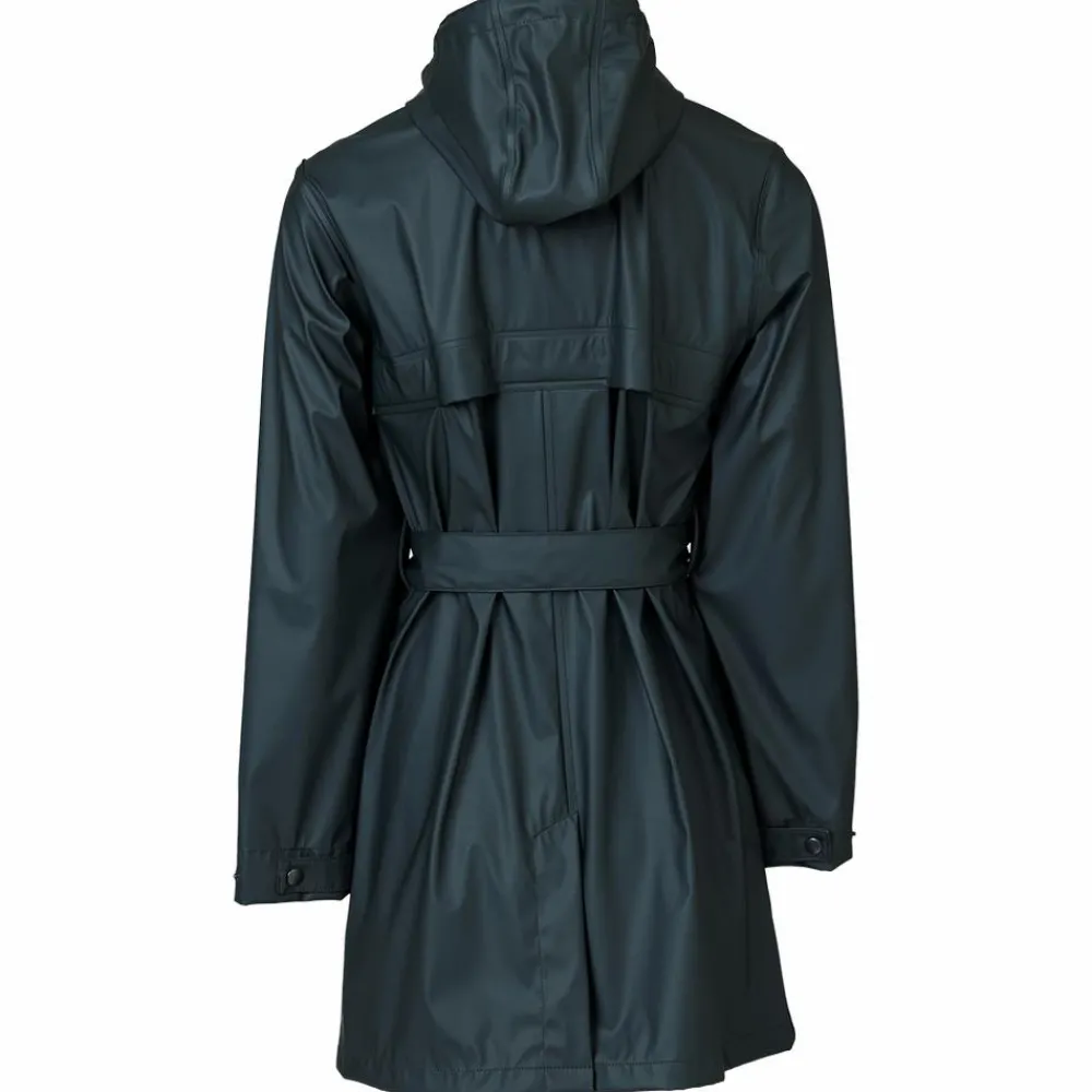 Elka moderne regnjakke med høj hals og aftageligt bindebælte i taljen. Jakken er vandtæt og har dobbeltsvejsede sømme, derudover 2-vejs YKK-lynlås, udvendigt vindfang med trykknapper, indvendigt vindfang, justerbare ærmer, 3 lommer med coated lynlås, udluftning i ryg og under arme samt hætte med snøretræk.