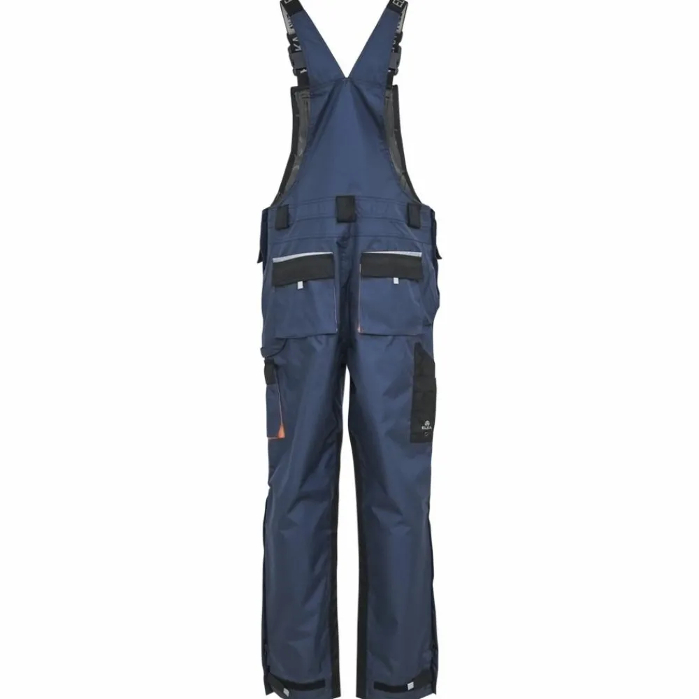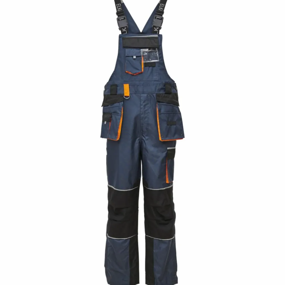 Elka overalls med seler med Fix-lock, Cordura® knælommer, aftagelige boks hængelommer, 2 lommer med lynlås, forstærkning på indersøm, tommestok lomme og hammerstrop, justerbar talje samt nøgle loop, cargolomme med refleks, lynlås med vindvang og gribebånd i ben, samt multifunktions brystlomme med mobillomme, ID lommer i plast, penholder. Se “Egenskaber” for yderligere information.