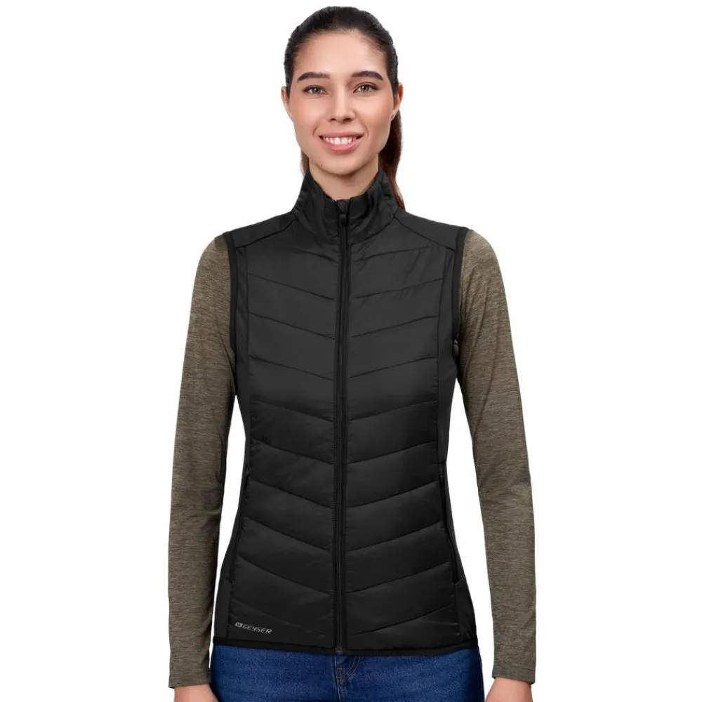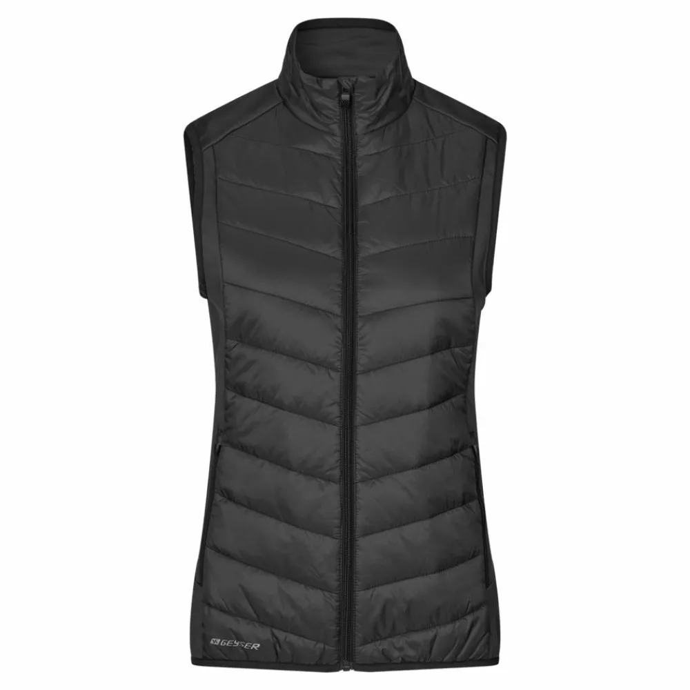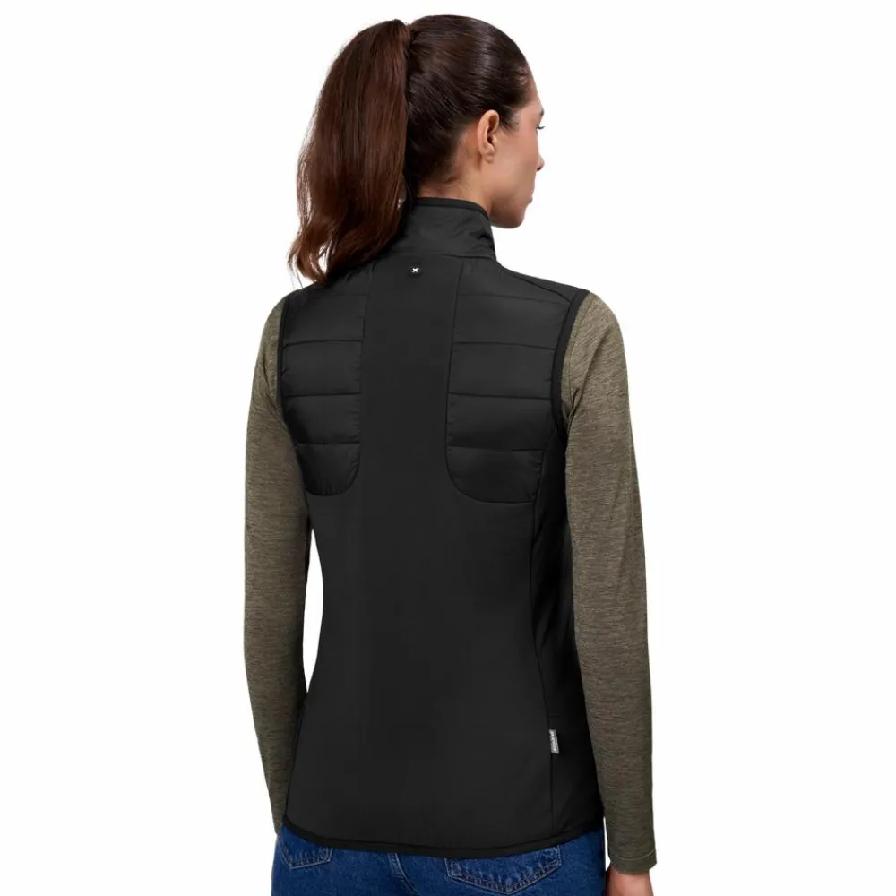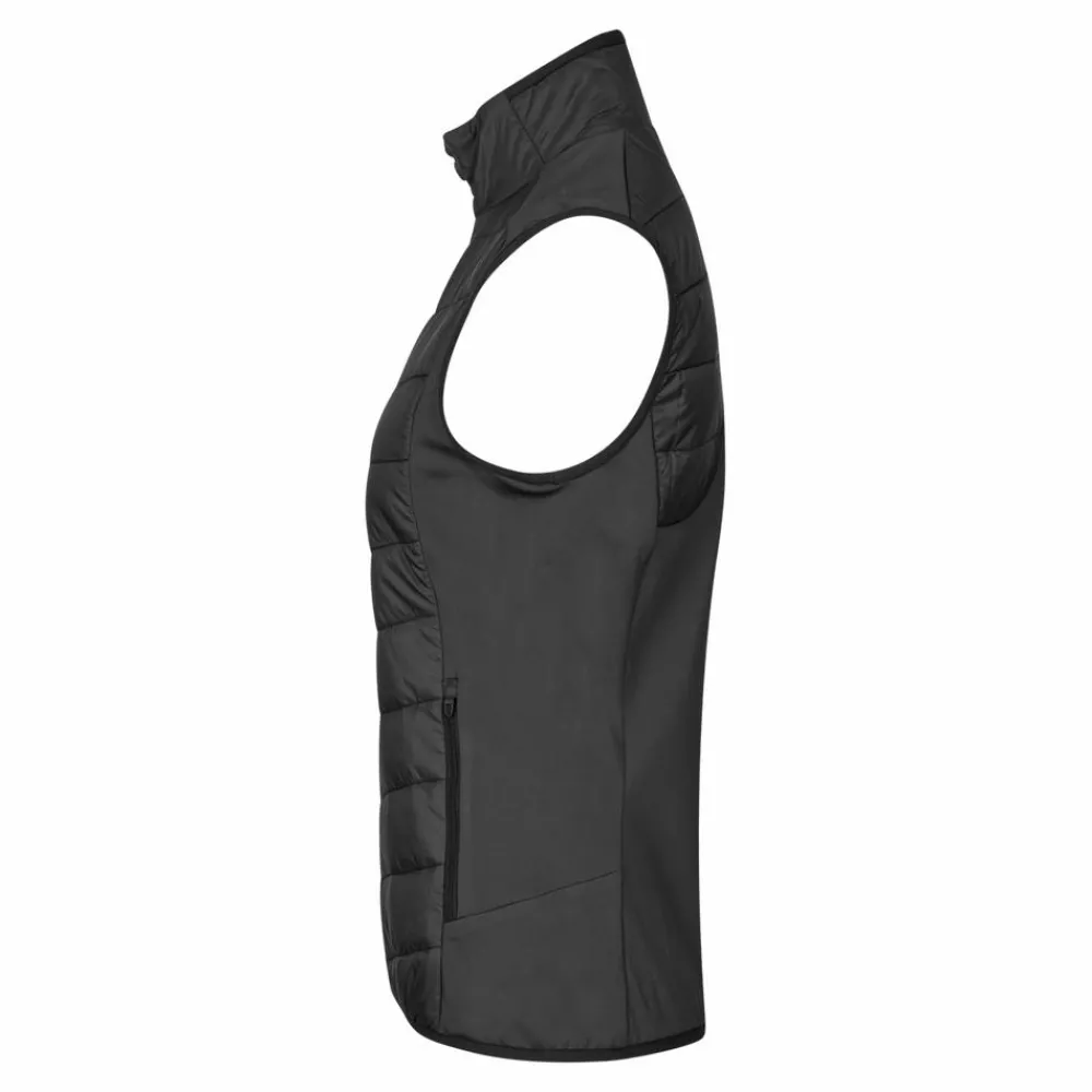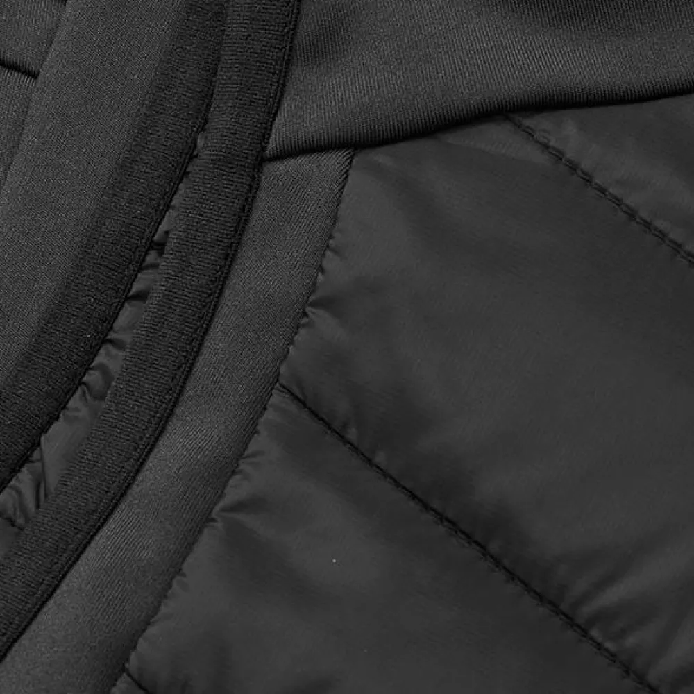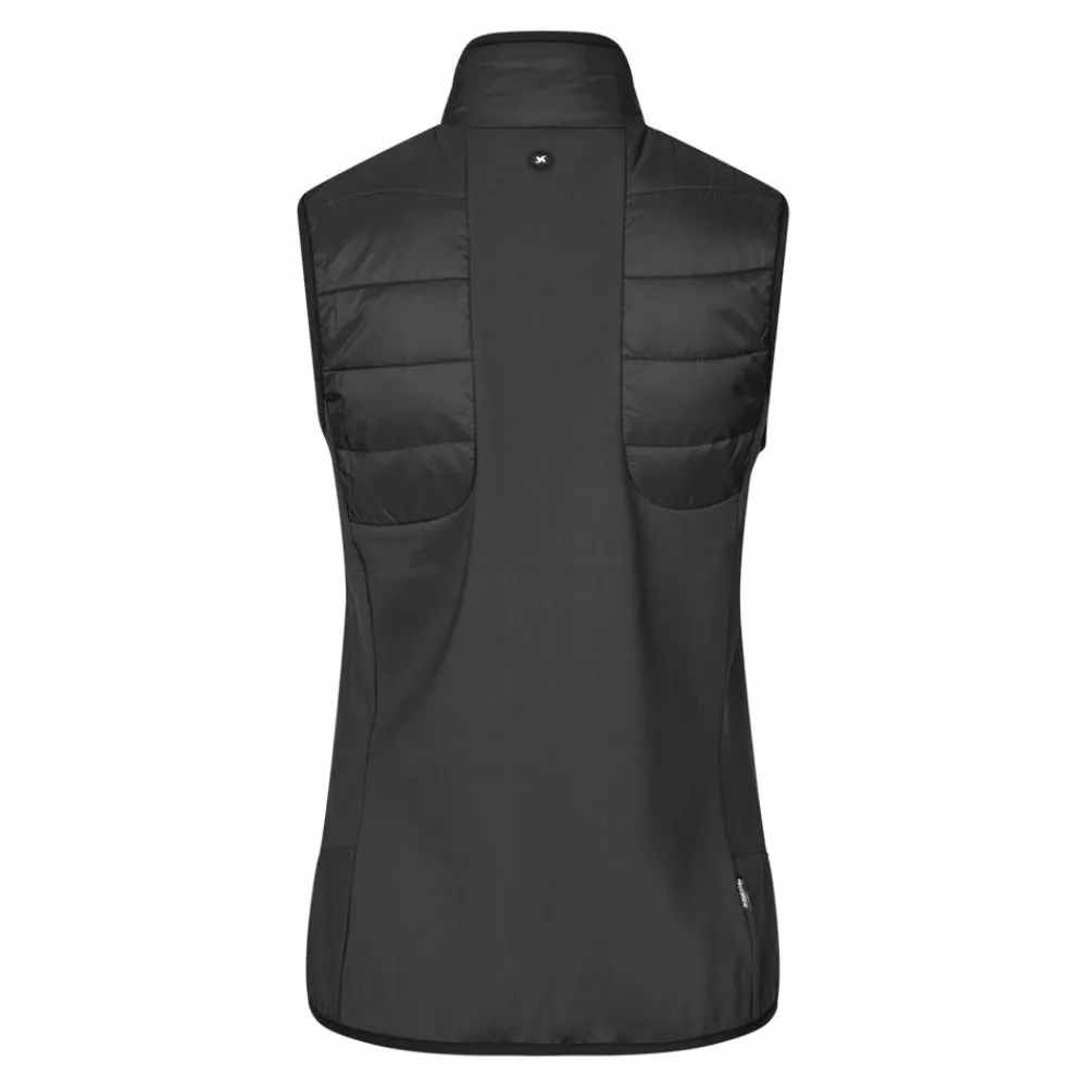 Sporty komfortabel hybrid vest. Front og bag i let quiltet vindtæt kvalitet. Vattering er THERMOLITE®T-DOWN lavet af recycled plastikflasker. Vesten er kombineret med en lækker blød 4-vejs stretch kvalitet, for optimale komfort og bevægelsesfrihed. YKK lynlås i front og sidelommer. Jakken har elastisk kantbånd i bund og ærmegab. Jakken har refleks print på front.