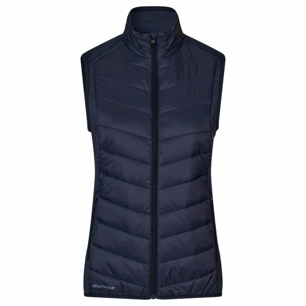Sporty komfortabel hybrid vest. Front og bag i let quiltet vindtæt kvalitet. Vattering er THERMOLITE®T-DOWN lavet af recycled plastikflasker. Vesten er kombineret med en lækker blød 4-vejs stretch kvalitet, for optimale komfort og bevægelsesfrihed. YKK lynlås i front og sidelommer. Jakken har elastisk kantbånd i bund og ærmegab. Jakken har refleks print på front.
