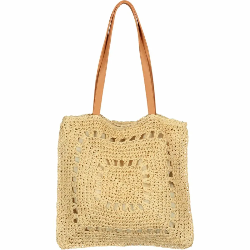 Hailys sivtaske i flot mønster og med fletdetaljer. Tasken har to hanke og lukkes med en lynlås. Tasken har et stort rum samt en lille lomme indvendigt.