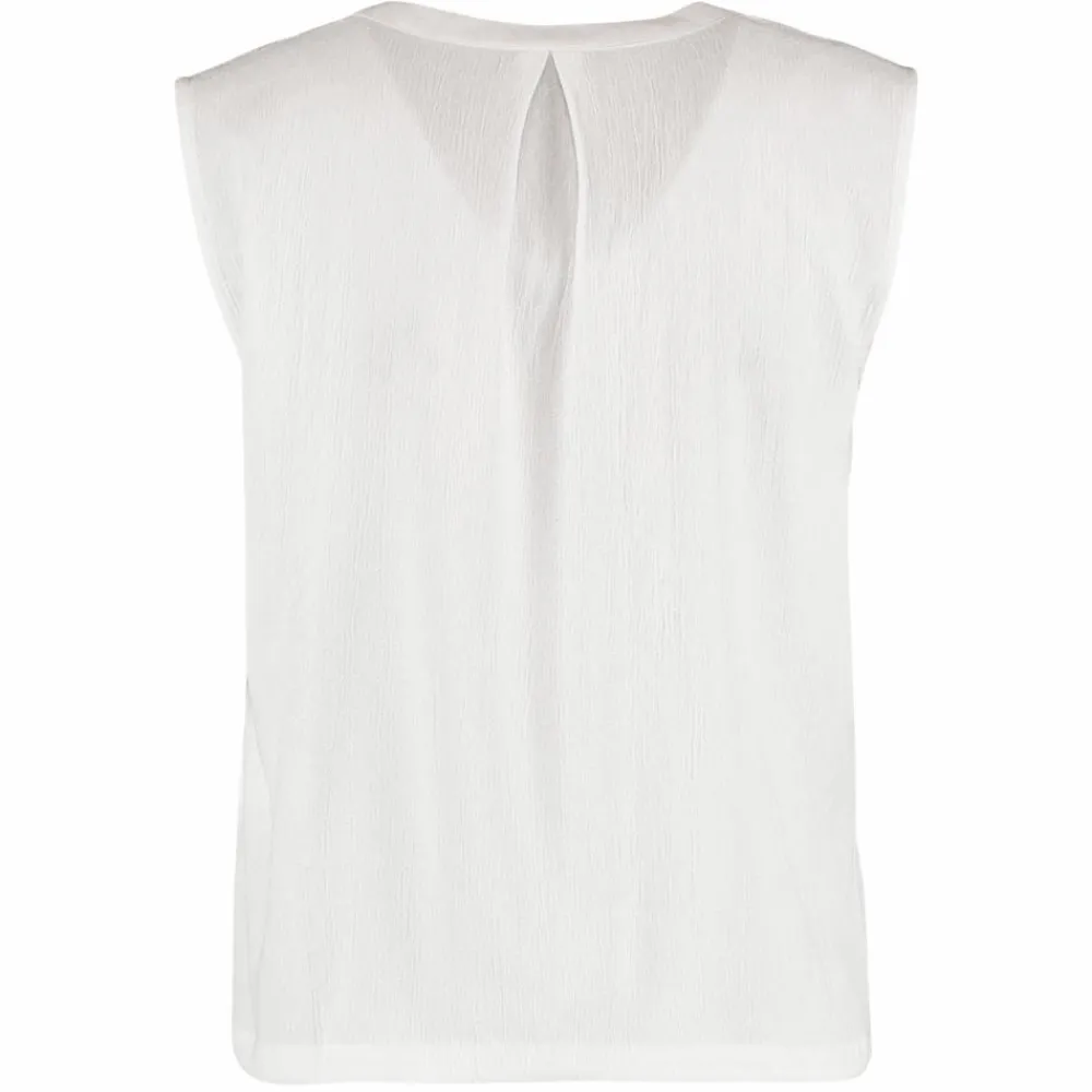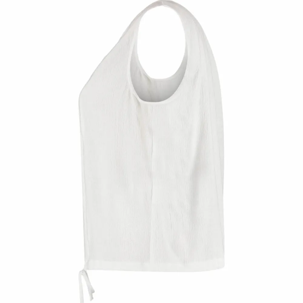 Hailys dame viskose top med struktur og hulmønster: Toppen lukkes med knapper, har V-udskæring samt bindebånd i bunden af toppen.