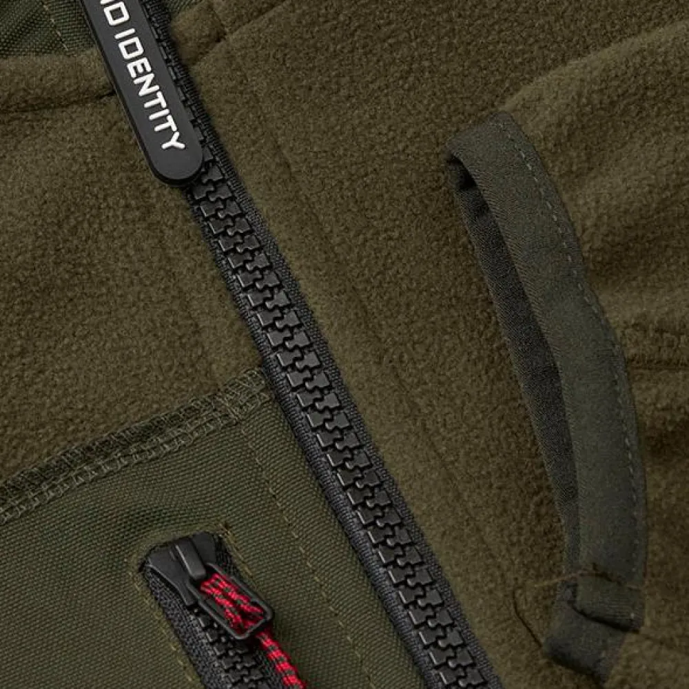 Jakke i slidstærk blød bonded fleece kvalitet med påsætning af dobbelt vævet Oxford kvalitet. Jakken har fleece på indersiden af kraven. Bund og ærmer er kantet med elastisk bånd. Derudover YKK-lynlås i front, brystlomme, sidelommer samt indvendige lommer.