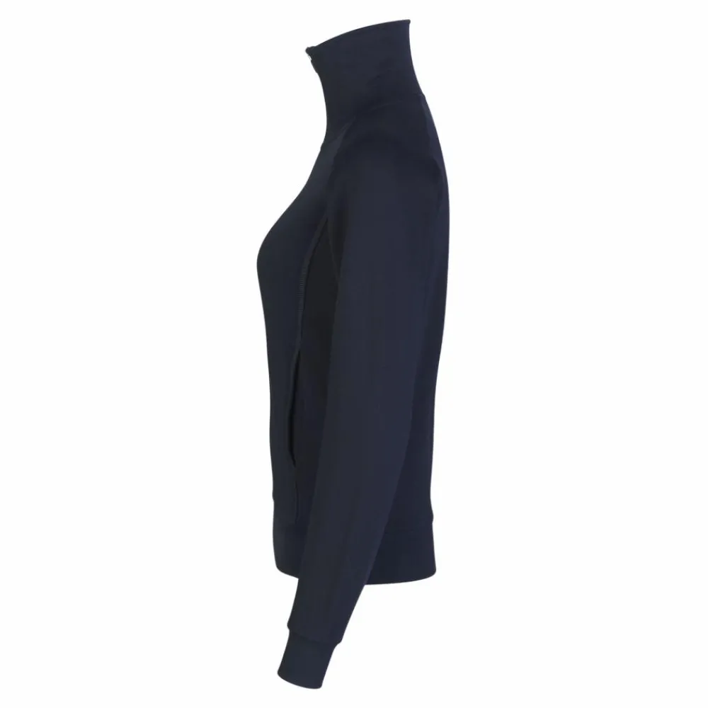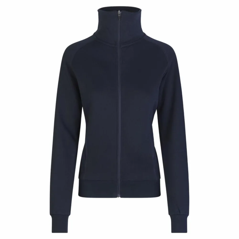 ID dame cardigan. ID cardigan i kraftig kvalitet til damer. Gennemgående lynlås og to stiklommer. Nakkebånd, rib ved ærme og bund. Flatlock-stikninger. Blød, børstet inderside.
