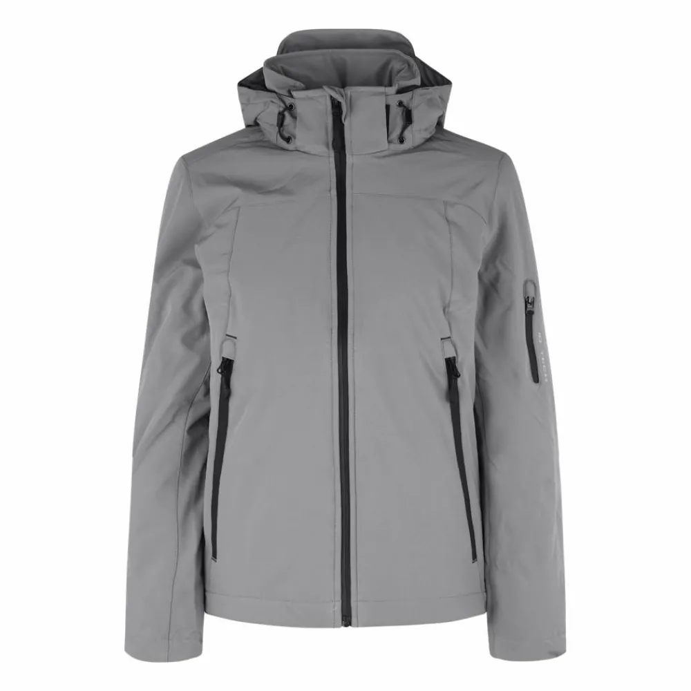 ID dame vinterjakke. Funktionel vinter softshell-jakke med vandafvisende lynlås. Tre-lags ID Tech® kvalitet med et varmt og blødt for. Slidstærk og strækbar vævet kvalitet yderst, funktionel membran med vind- og vandafvisende egenskaber. Aftagelig hætte.