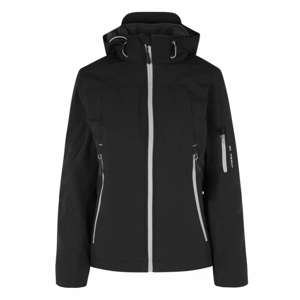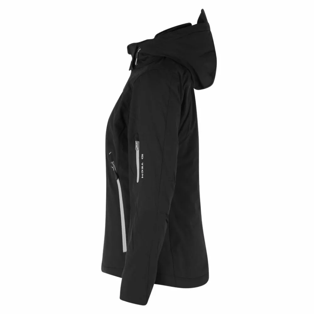 ID dame vinterjakke. Funktionel vinter softshell-jakke med vandafvisende lynlås. Tre-lags ID Tech® kvalitet med et varmt og blødt for. Slidstærk og strækbar vævet kvalitet yderst, funktionel membran med vind- og vandafvisende egenskaber. Aftagelig hætte.