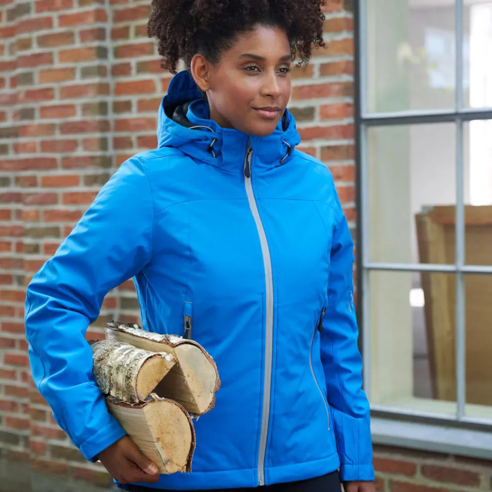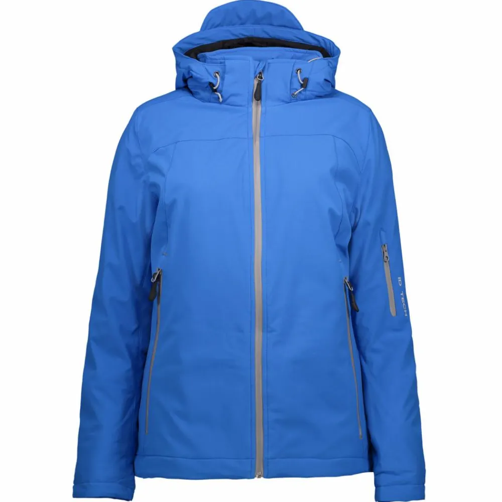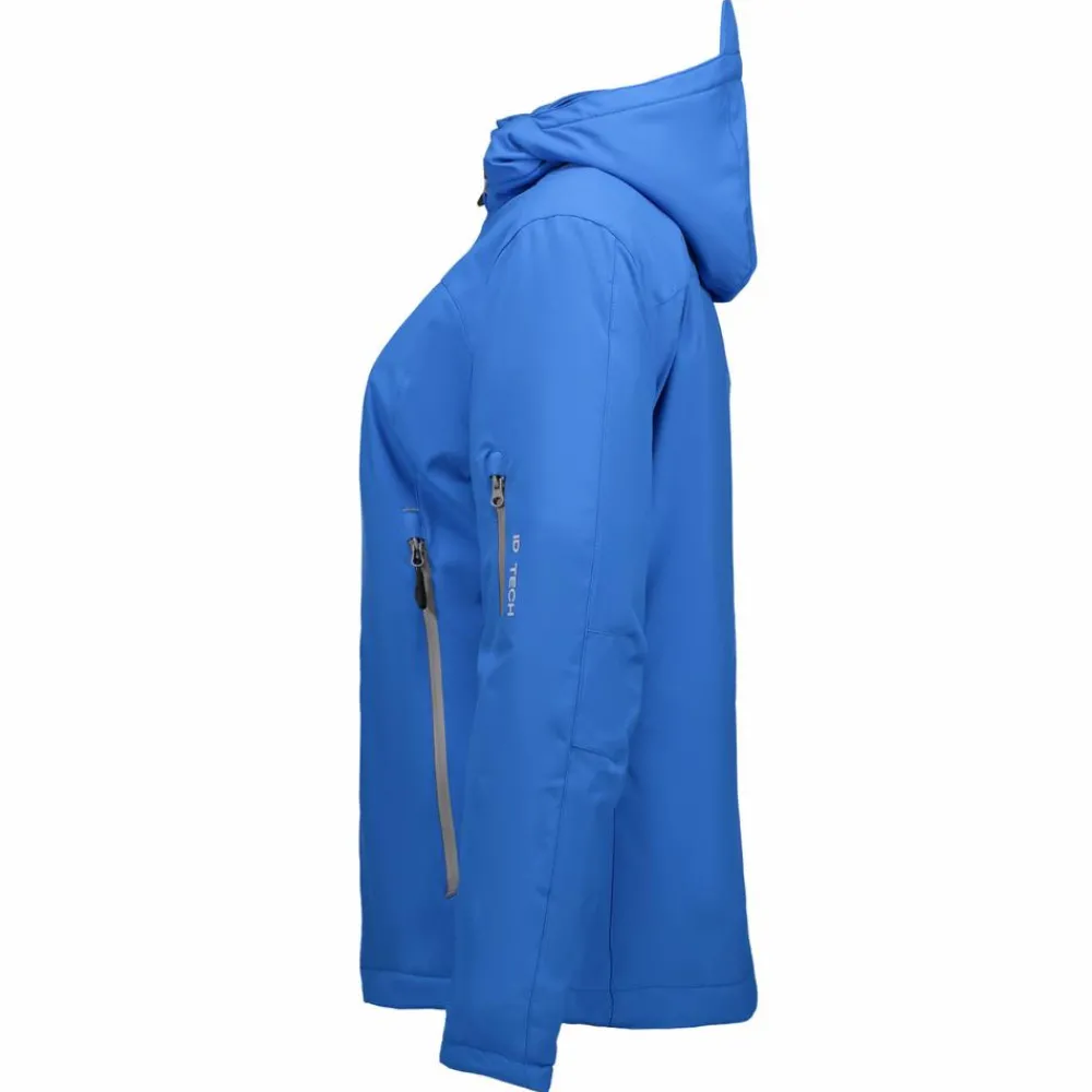 ID dame vinterjakke. Funktionel vinter softshell-jakke med vandafvisende lynlås. Tre-lags ID Tech® kvalitet med et varmt og blødt for. Slidstærk og strækbar vævet kvalitet yderst, funktionel membran med vind- og vandafvisende egenskaber. Aftagelig hætte.