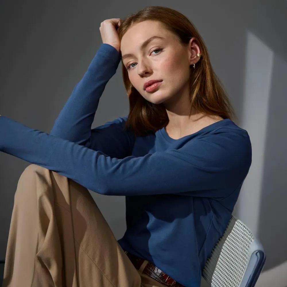 ID Interlock langærmet T-shirt. T-shirten er i blød antipillingkvalitet. Den er let figursyet og har rund halsudskæring.