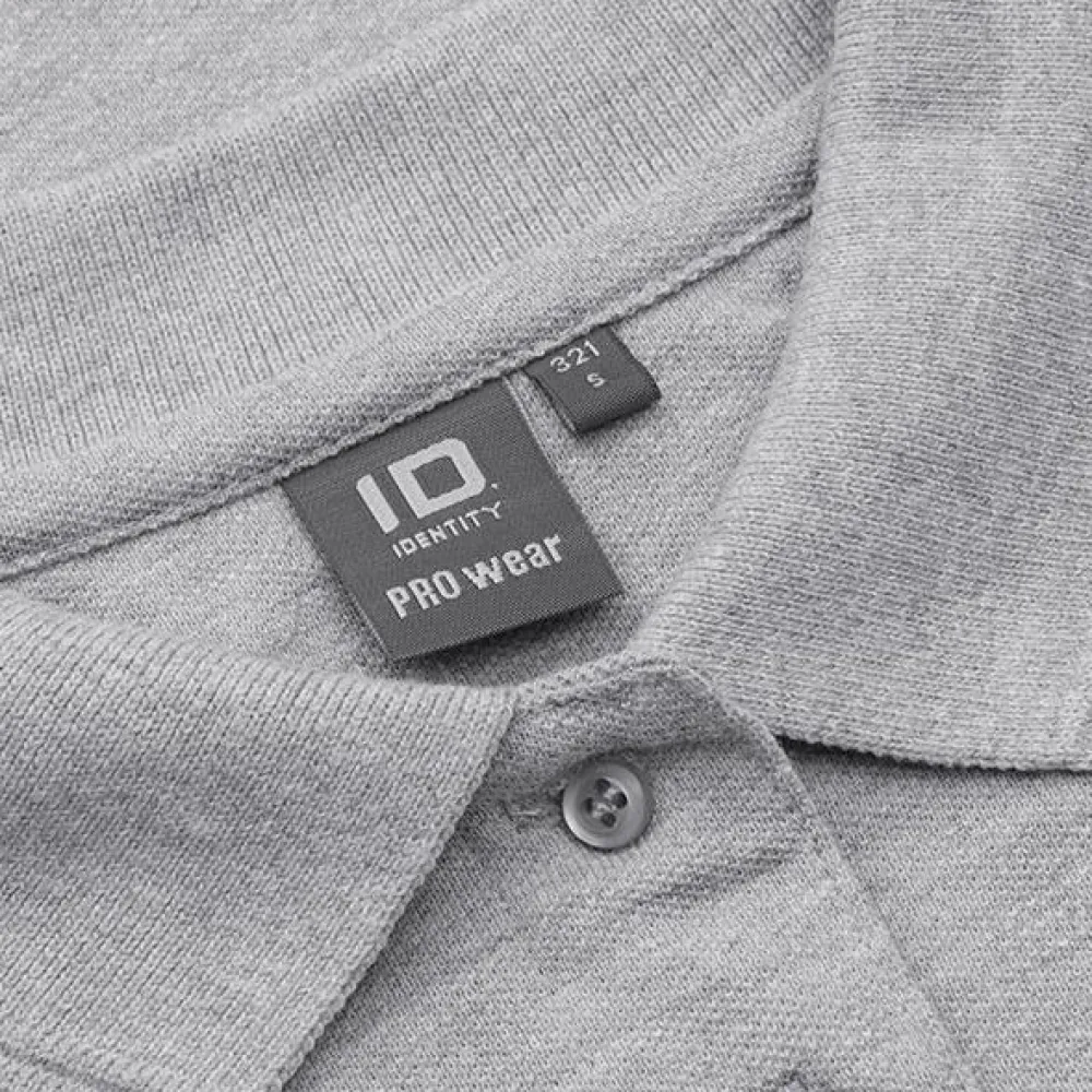 ID Pro Wear let figursyet polo i slidstærkt materiale. Poloskjorten har nakkespejl og nakke- og skulderbånd. Den har gennemgået en forkrympningsproces ved meget høje temperaturer, både før og efter indfarvningen, for ekstra stabilitet og lang levetid.