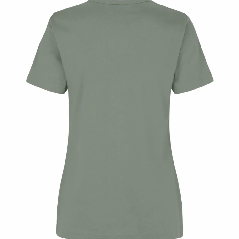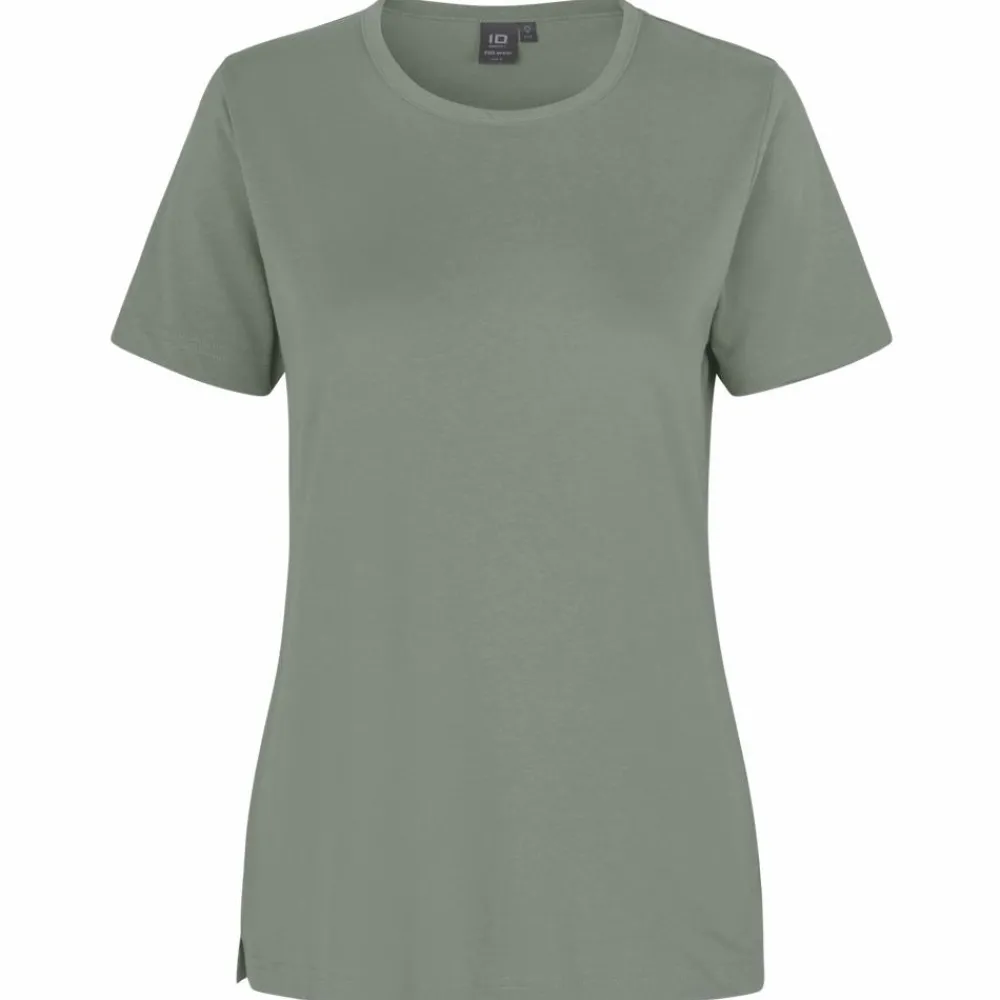 ID Pro Wear dame t-shirt med rund hals og slids i siden. T-shirten har gennemgået en forkrympningsproces ved meget høje temperaturer, både før og efter indfarvningen, for ekstra stabilitet og lang levetid. T-shirten er let figursyet.