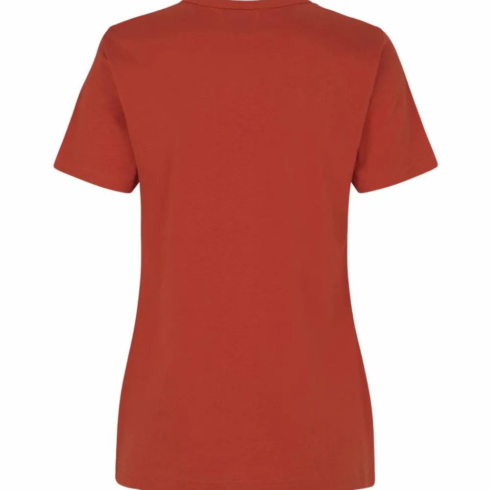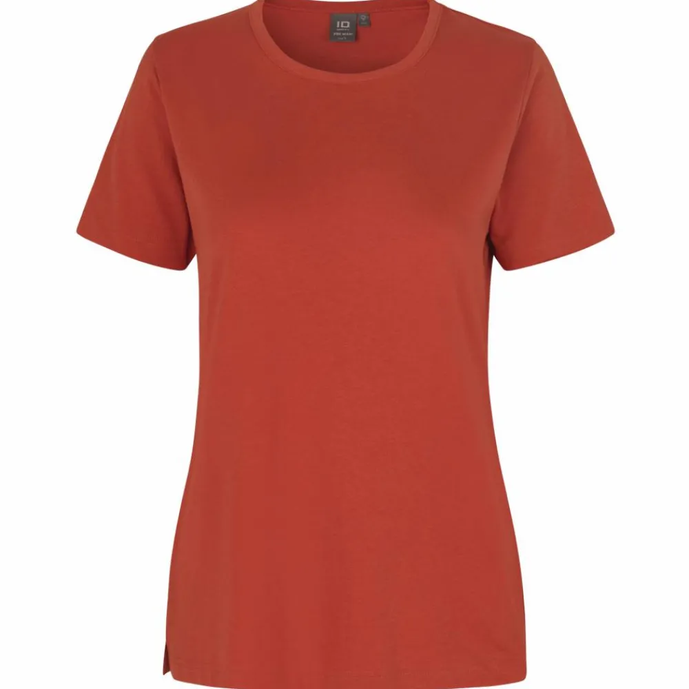 ID Pro Wear dame t-shirt med rund hals og slids i siden. T-shirten har gennemgået en forkrympningsproces ved meget høje temperaturer, både før og efter indfarvningen, for ekstra stabilitet og lang levetid. T-shirten er let figursyet.