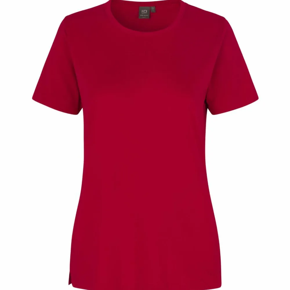 ID Pro Wear dame t-shirt med rund hals og slids i siden. T-shirten har gennemgået en forkrympningsproces ved meget høje temperaturer, både før og efter indfarvningen, for ekstra stabilitet og lang levetid. T-shirten er let figursyet.