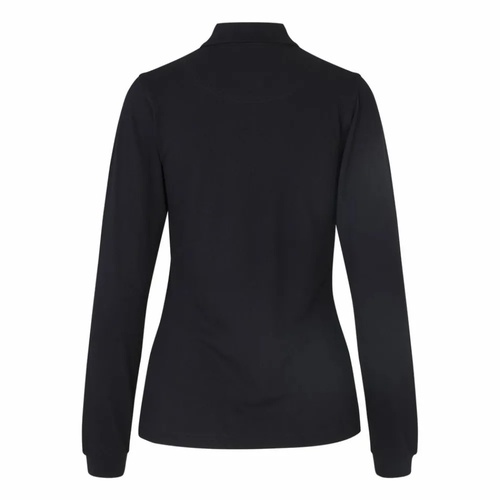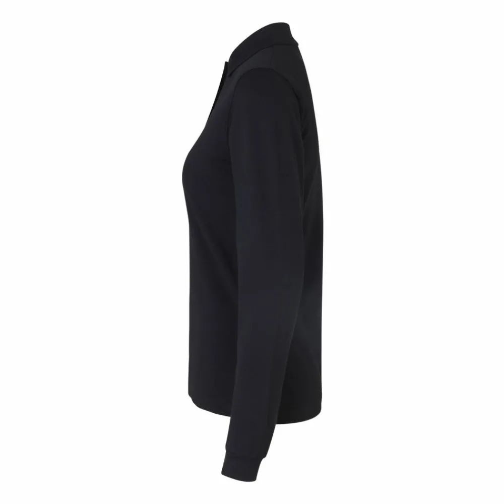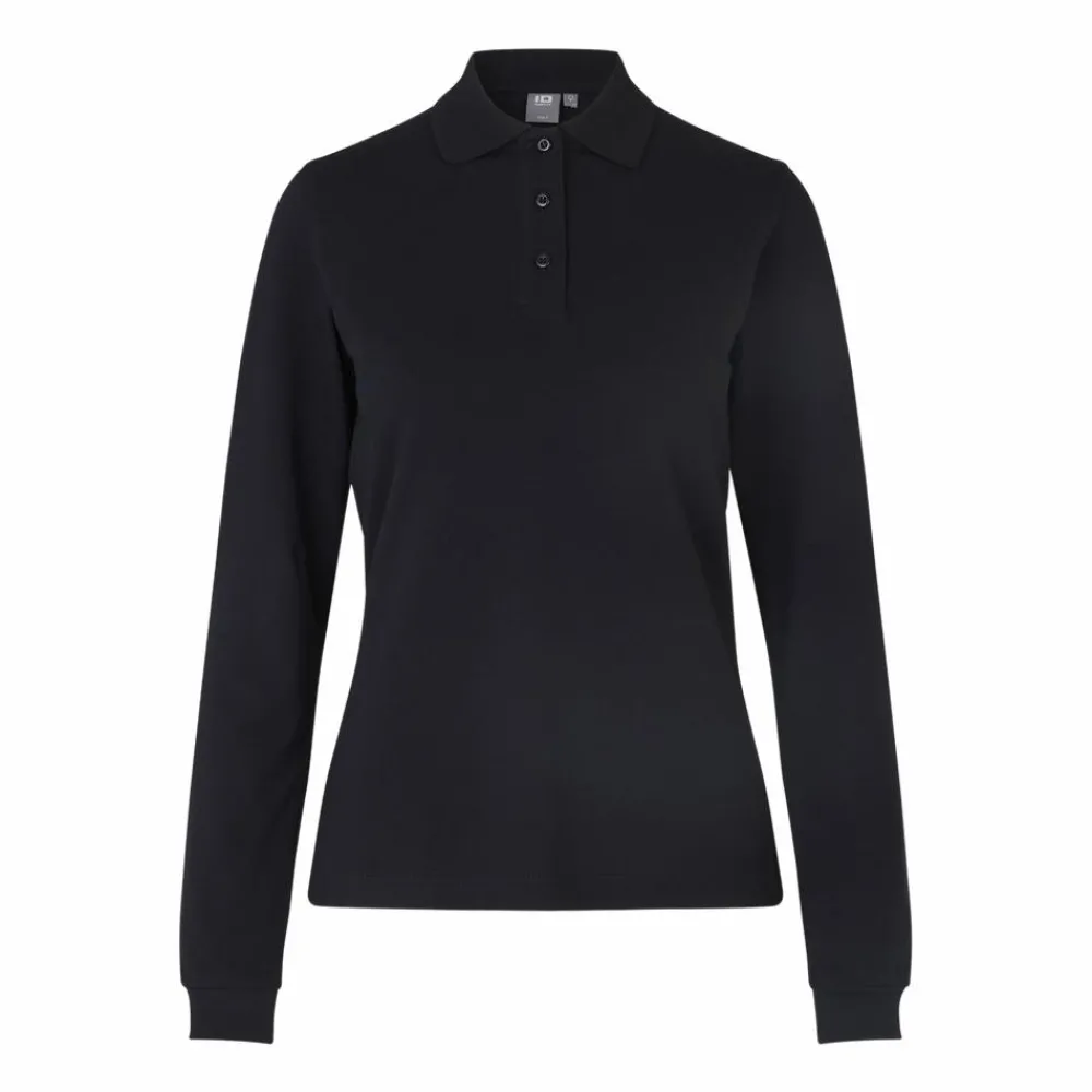 ID dame poloshirt med stretch. Polotrøjen har lange ærmer med elastik rib i enden. Trøjen har krave med knappelukning.