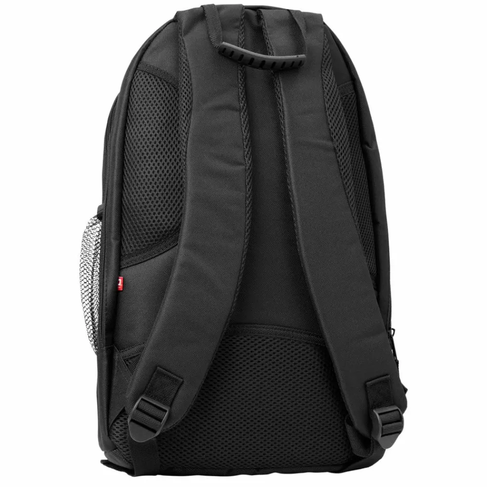 Stort hovedrum med ekstra lomme. Frontrum med mange praktiske lommer. To sidelommer, heraf en med lynlås. Smart lomme i toppen. Kraftigt polstret rygstykke og skulderrem. Behageligt håndtag i gummimateriale. Mål: 48 x 29 x 14 cm/ 18 L