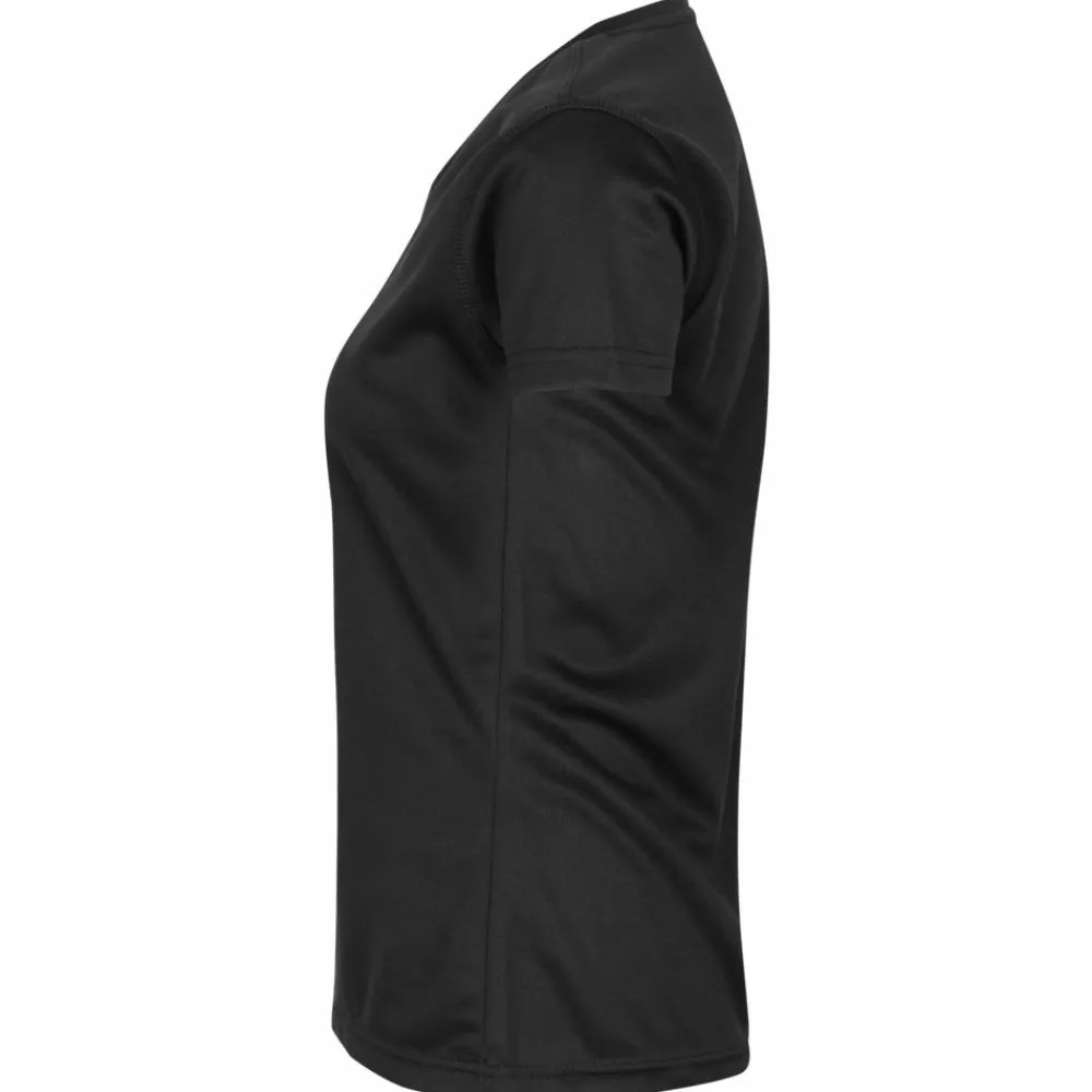Trænings T-shirt fra ID til damer. Funktionel T-shirt med V-hals. Svedtransporterende, åndbar og hurtigttørrende kvalitet. Høj funktionalitet til en skarp pris. Let figursyet.