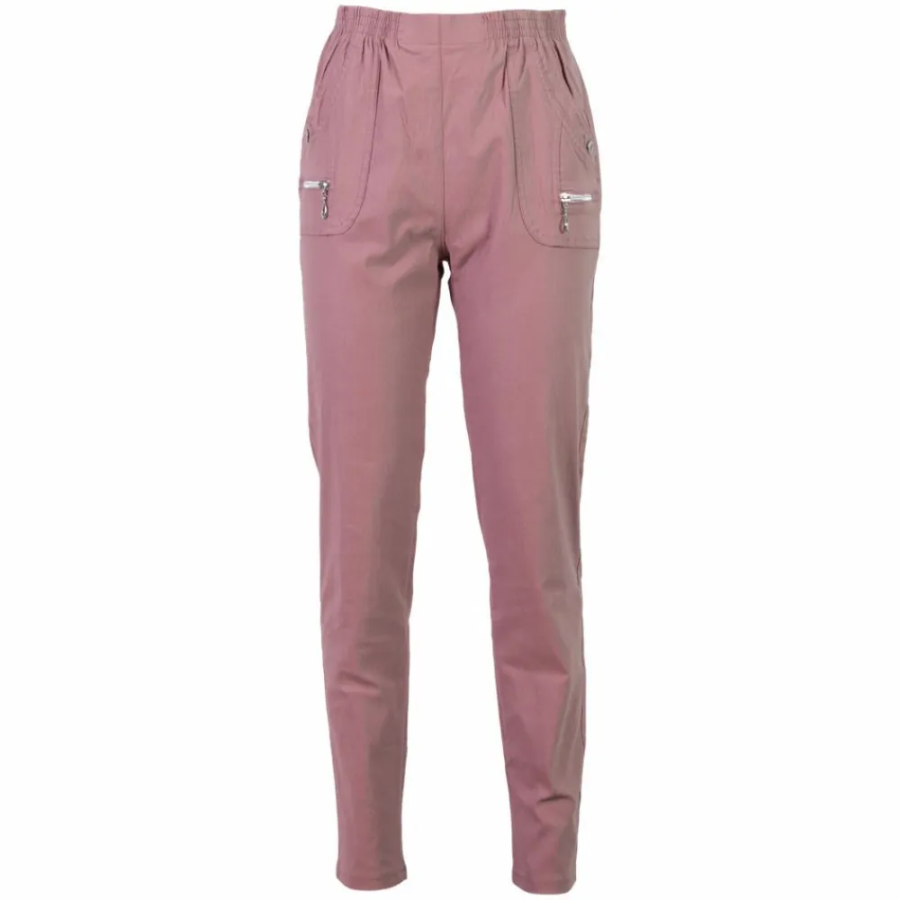 Dagny Dame bukser med flotte detaljer ved lommerne. Bukserne har bred elastik i linningen og er i en blød kvalitet.