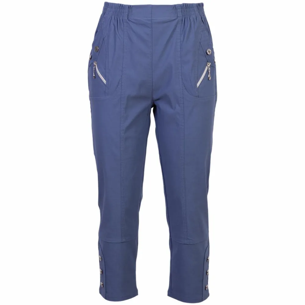 Vera dame knickers. Smarte bukser med skrå lommer, lynlås og knapper ved lommerne samt elastikkant ved taljen.