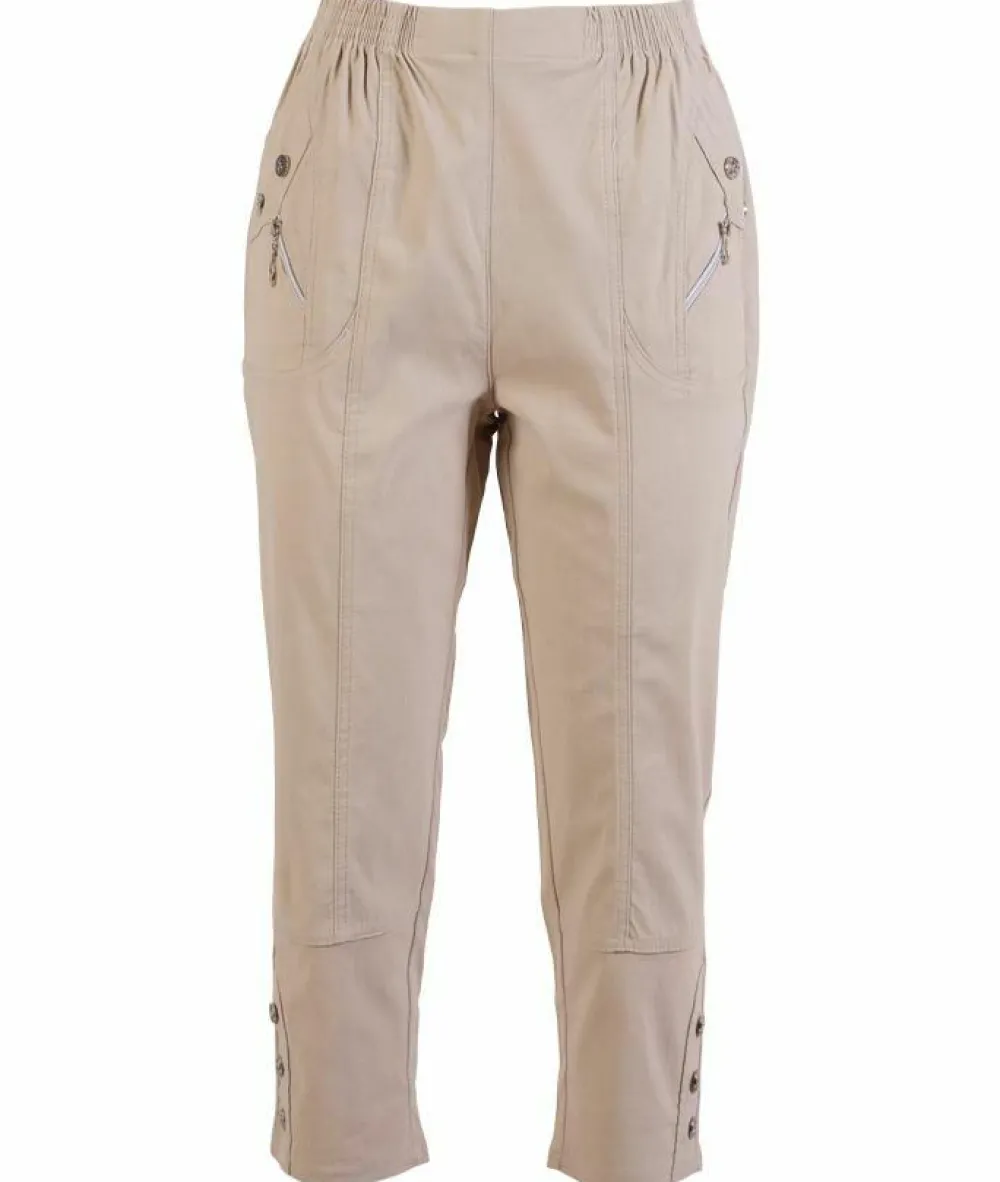 Vera dame knickers. Smarte bukser med skrå lommer, lynlås og knapper ved lommerne samt elastikkant ved taljen.