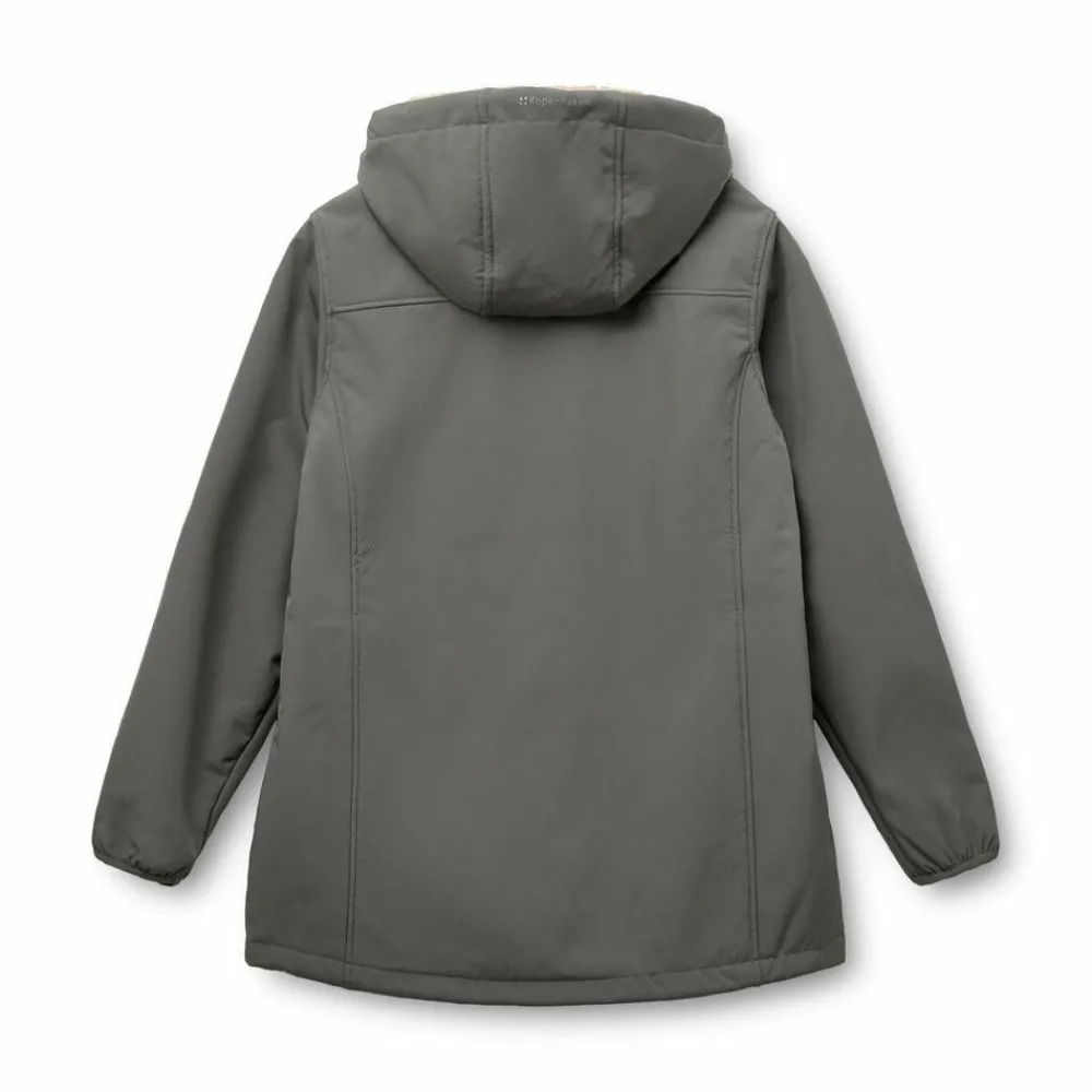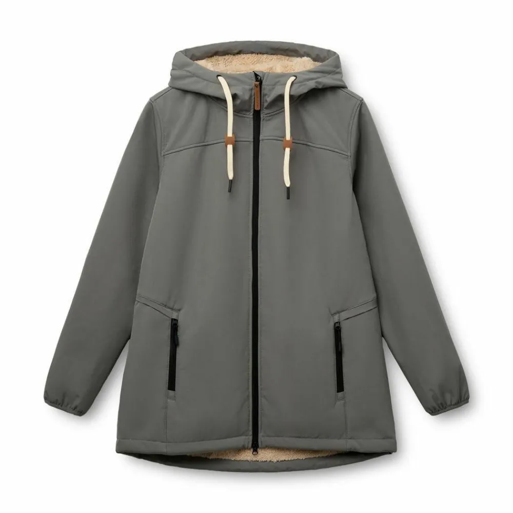 Detaljer: Pileforing, to-vejs lynlås, hætte, to udvendige lommer