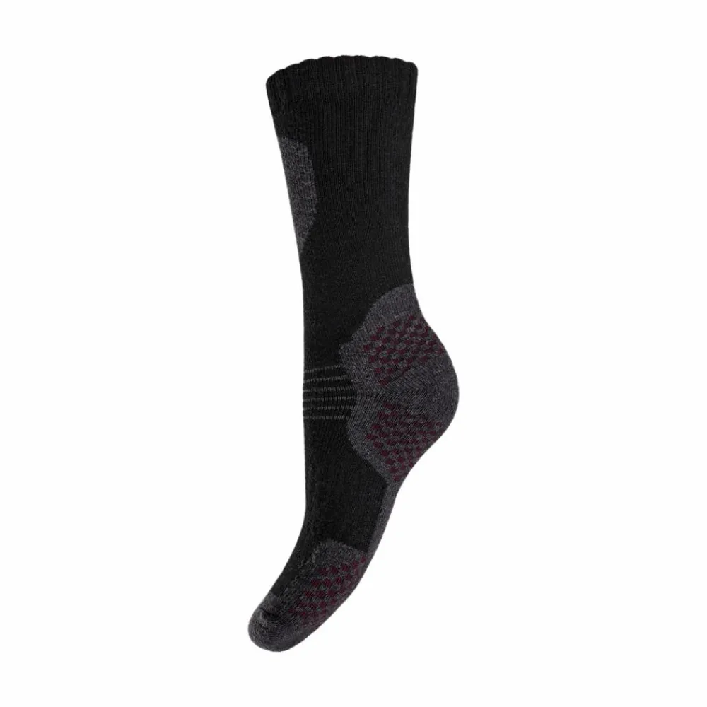 Lange skisokker lavet af 40% uld, 33% akryl, 22% polyester og 5% spandex.