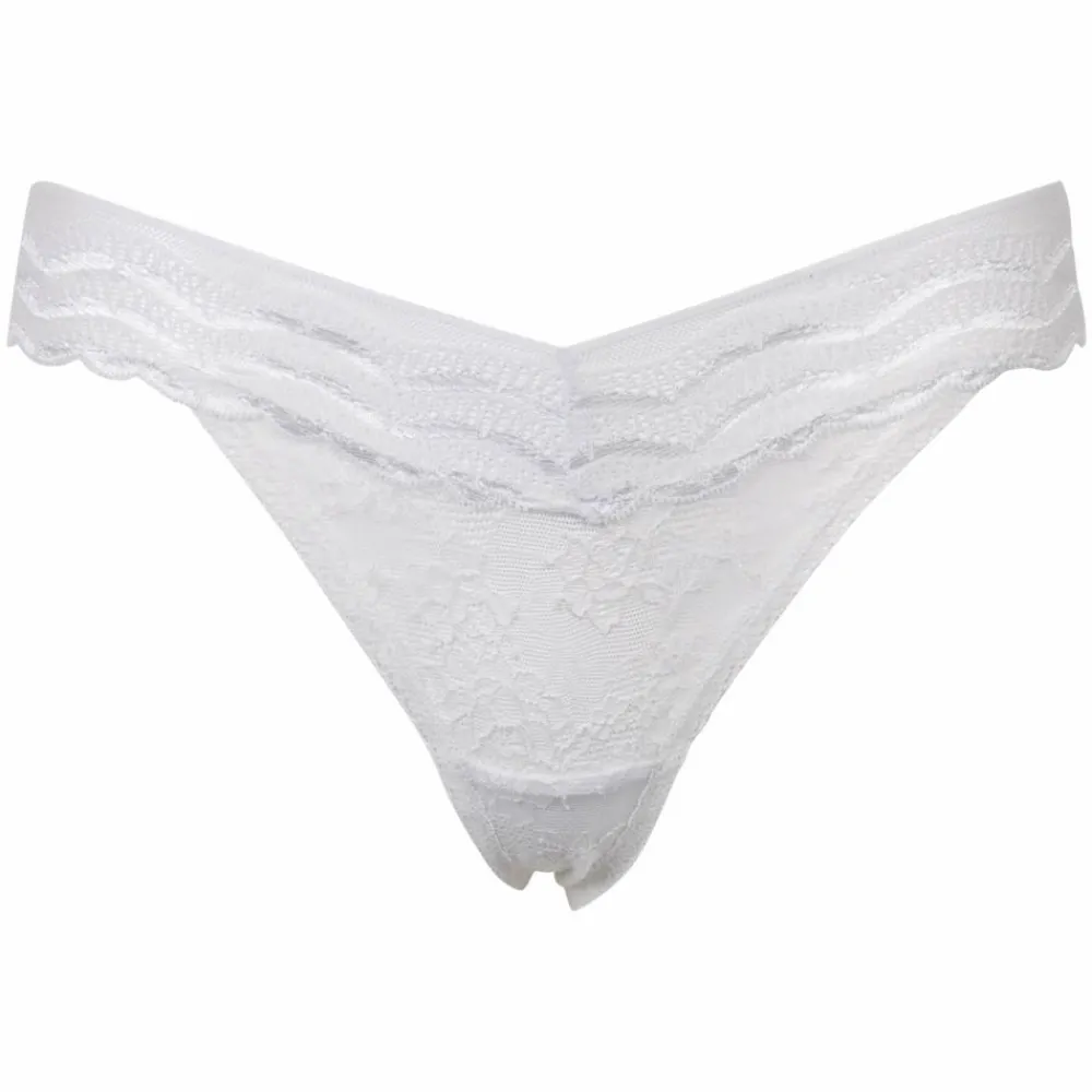 G-streng trussernes elastiske blondestof sidder blødt og tæt til kroppen.