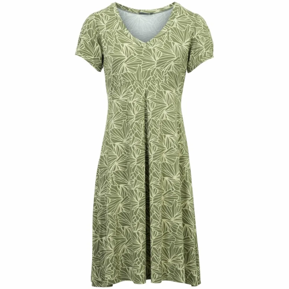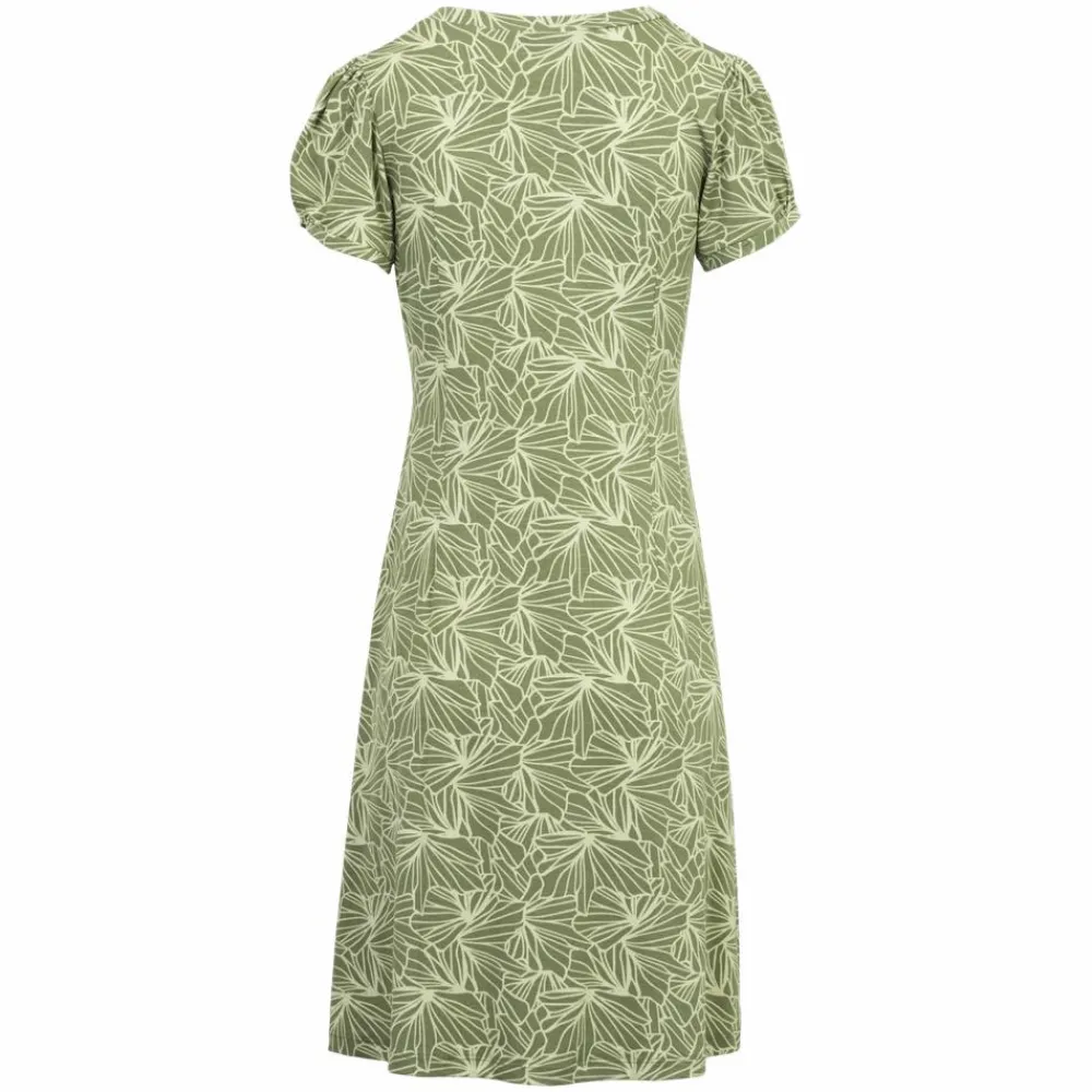 Marinello kjole med all over print. Kjolen har en v-hals og korte ærmer med let puf-effekt. Kjolen har en syning under brystet og folde detalje ned langs kjolen. Kjolen er i luftigt og blødt materiale, som gør den behagelig at have på. Kjolen har et let v-formet skørt.