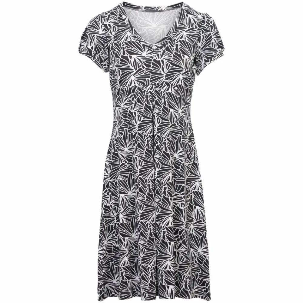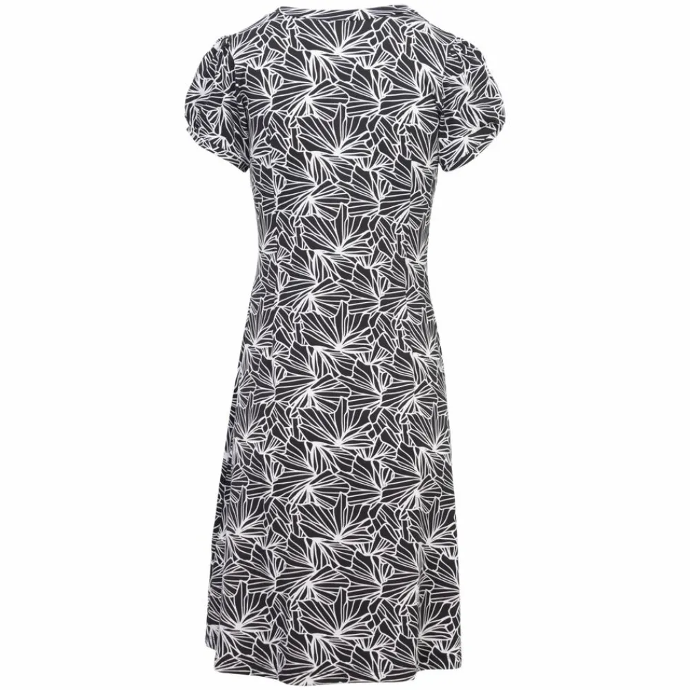 Marinello kjole med all over print. Kjolen har en v-hals og korte ærmer med let puf-effekt. Kjolen har en syning under brystet og folde detalje ned langs kjolen. Kjolen er i luftigt og blødt materiale, som gør den behagelig at have på. Kjolen har et let v-formet skørt.