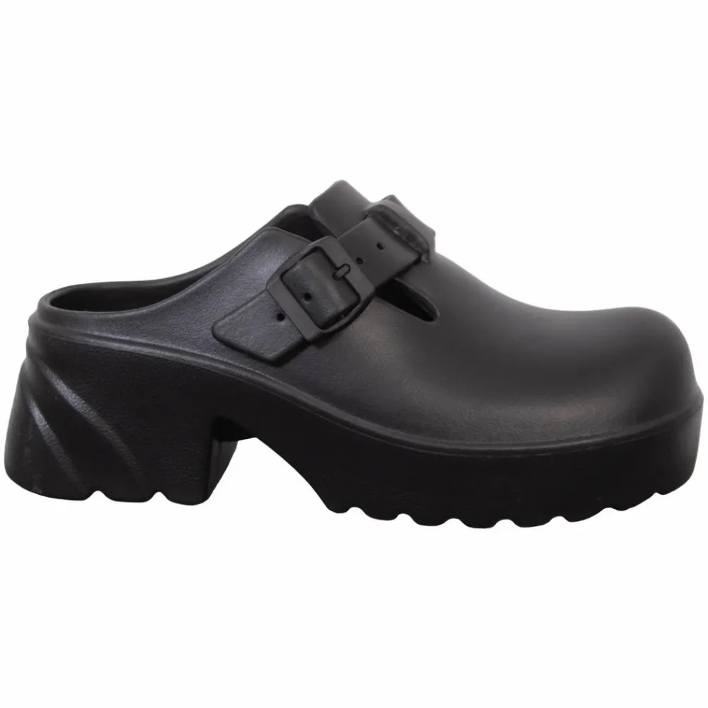 Chunky plateau clogs med blokhæl. Cloggen har justerbare spænder for en behagelig pasform.