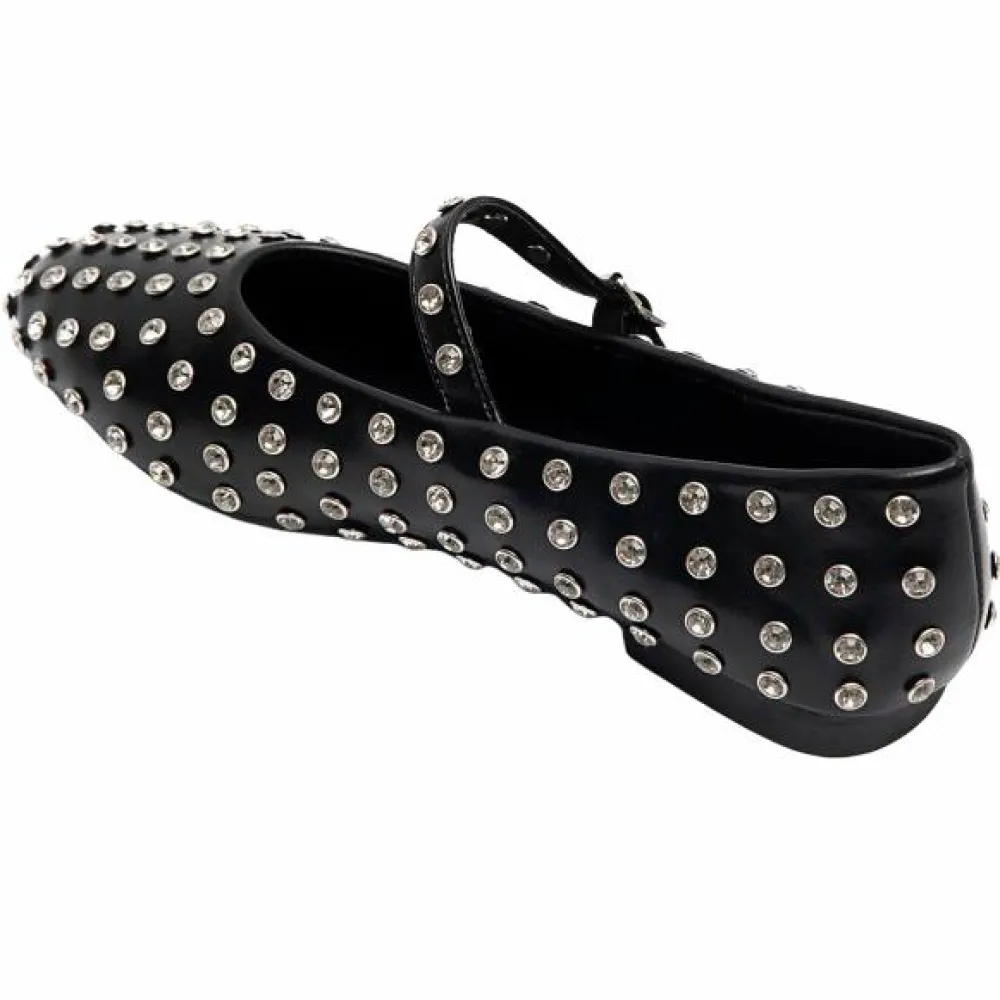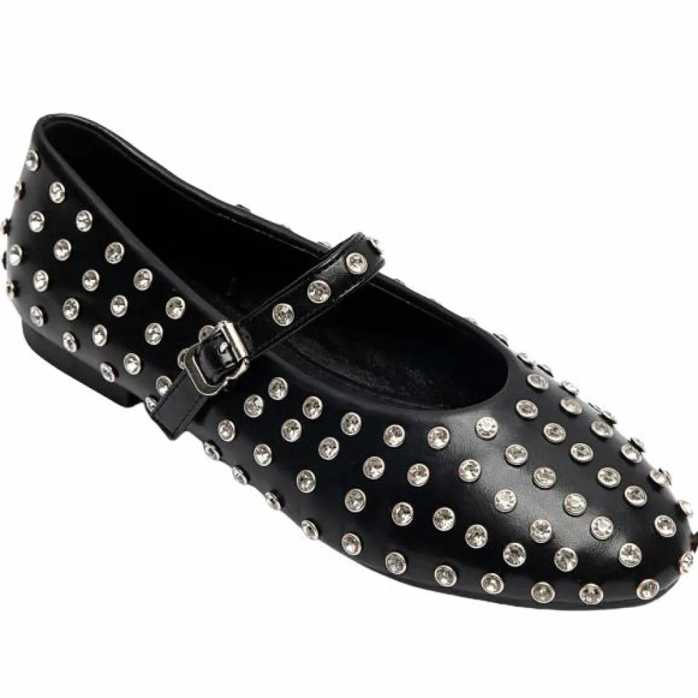 Fine, spidse ballerinaer med justerbare stropper over vristen – pyntet med rhinsten.
