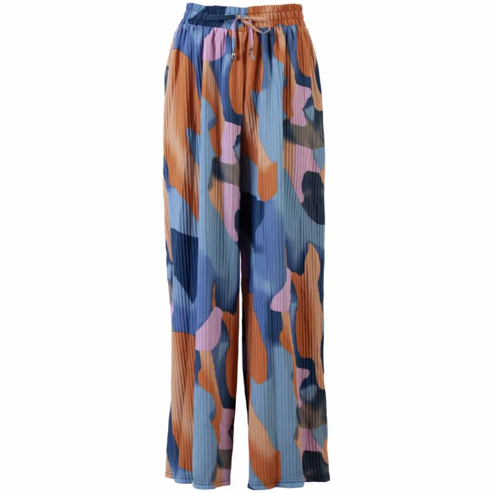 Lange bukser i plisse med all-over-print samt elastik og bindebånd i taljen.