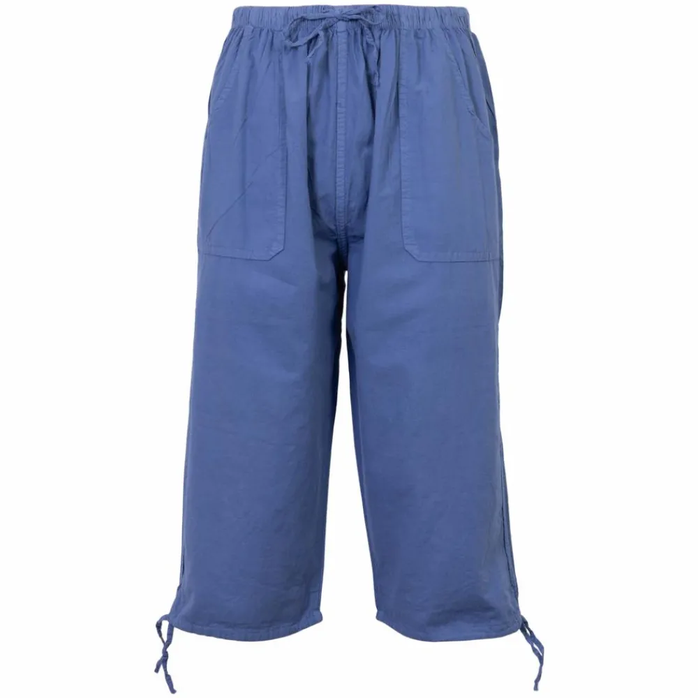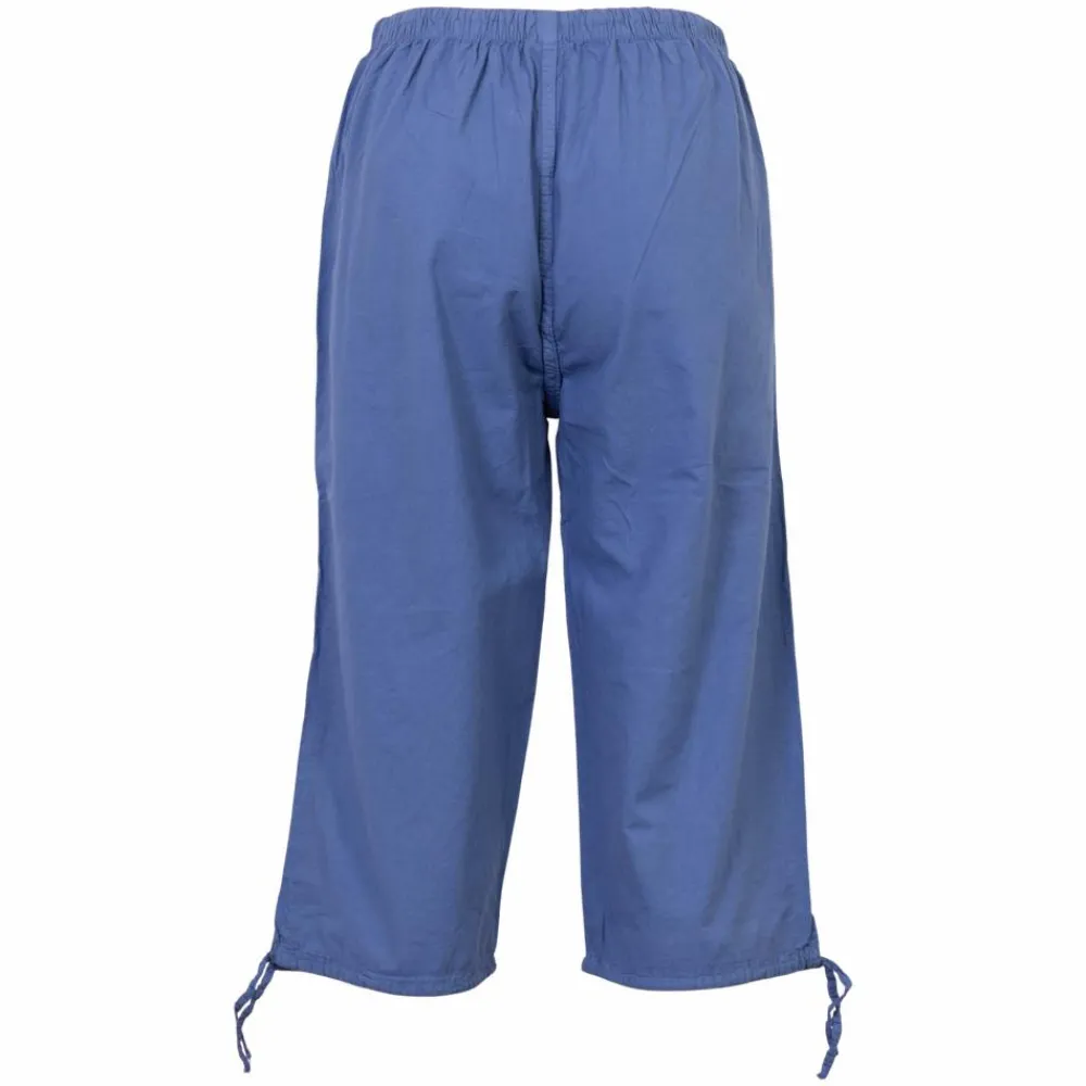 Flotte og klassiske dame capri bukser. Bukserne er fremstillet i blødt materiale, som føltes behageligt at have på. Capri bukserne har elastik og bindebånd i taljen, som gør det er muligt at justere bukserne, så de sidder helt perfekt. Bukserne har to lommer foran. 3/4 bukserne har justérbar snøre ved buksebenets kant, så bredden kan reguleres.