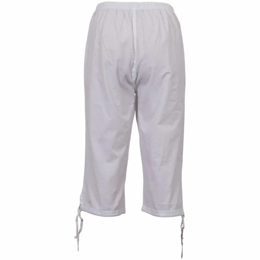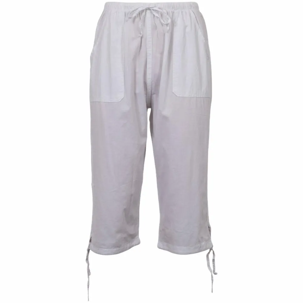 Flotte og klassiske dame capri bukser. Bukserne er fremstillet i blødt materiale, som føltes behageligt at have på. Capri bukserne har elastik og bindebånd i taljen, som gør det er muligt at justere bukserne, så de sidder helt perfekt. Bukserne har to lommer foran. 3/4 bukserne har justérbar snøre ved buksebenets kant, så bredden kan reguleres.