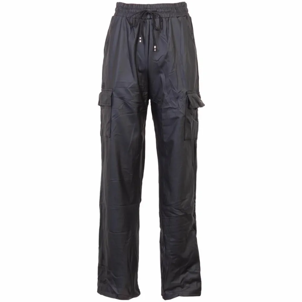 PU cargobukser med et trendy design. Bukserne er udstyret med praktiske sidelommer med flapdetaljer, elastik i taljen samt med justerbar snøre.