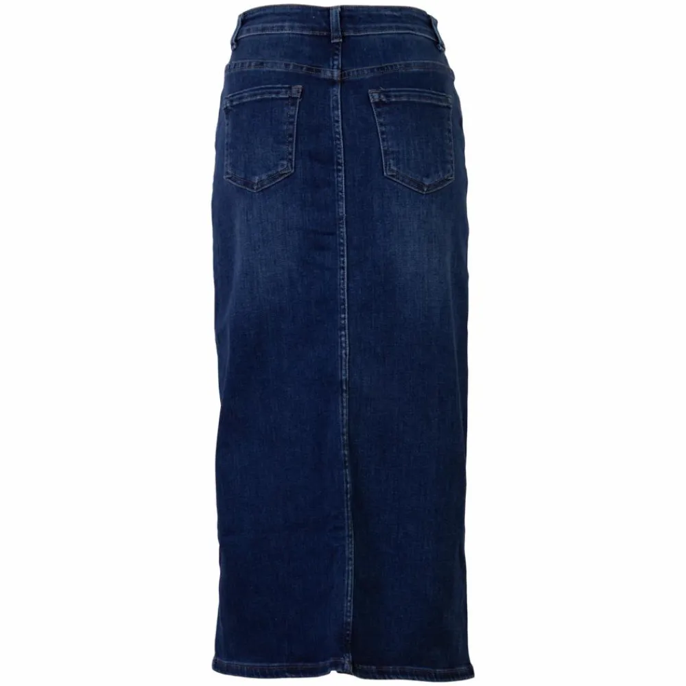 Dame stretch nederdel. Flot nederdel med to lommer foran og bagpå, bæltestropper i taljen samt knap- og lynlåslukning. Nederdelen har en lang slids foran.
