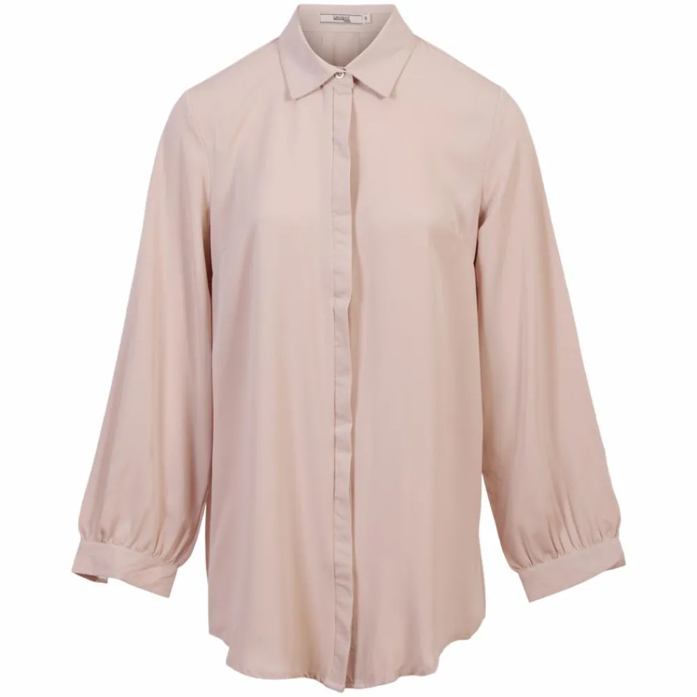 Roseline skjorte med plisse. Super smart skjorte med plisse bagpå skjorten. Modellen har også en beskytter foran knapperne, så man ikke kan se knapperne. Modellen er længere bagpå end foran. OBS: lille i størrelsen, gå gerne en størrelse op.
