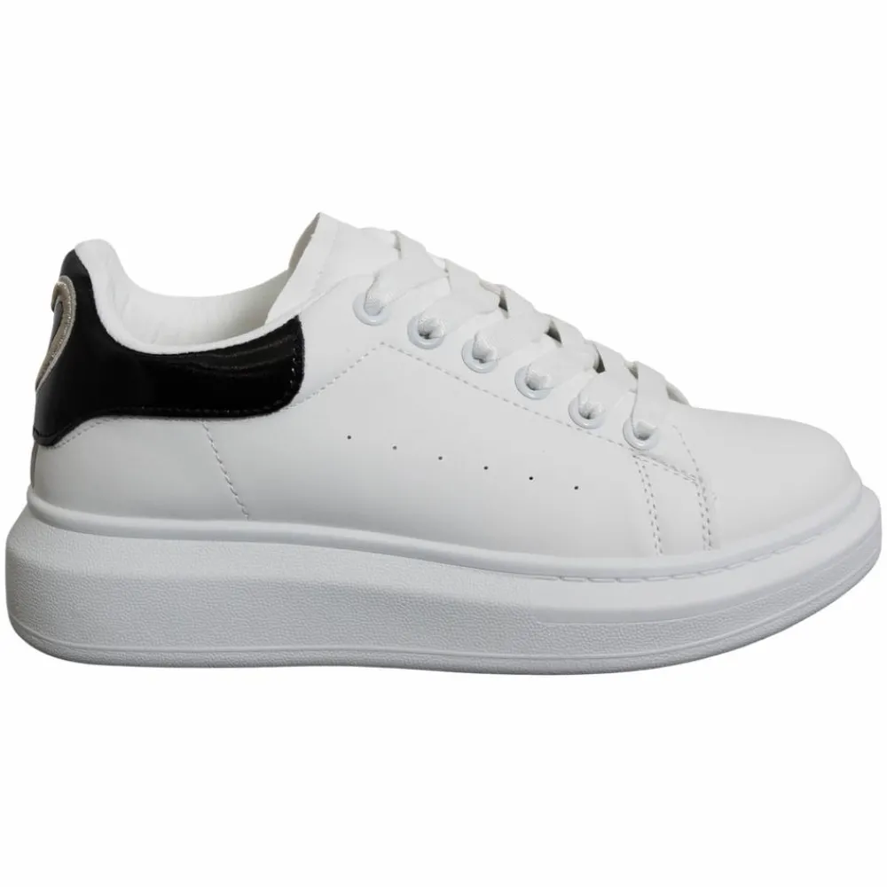 Stilrene og moderne sneakers i sporty look med høj plateau sål og detalje på hælen. Skoen har en klassisk snørelukning og rund tå. Materialet er slidstærkt og let at rengøre.