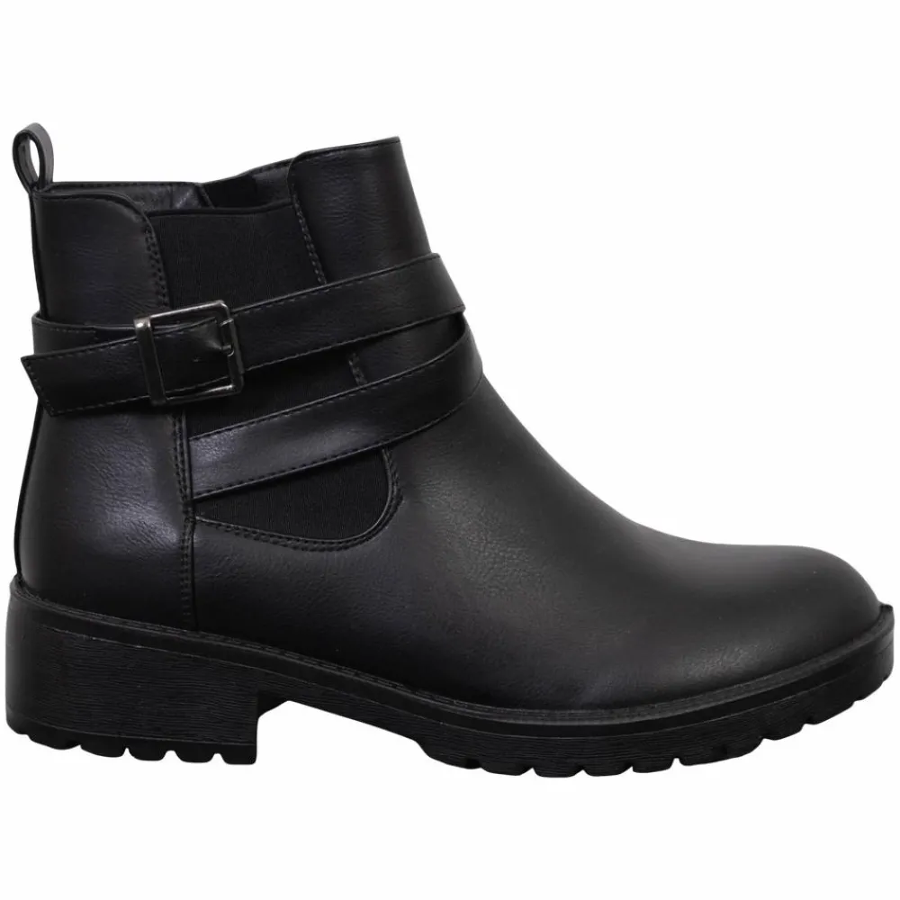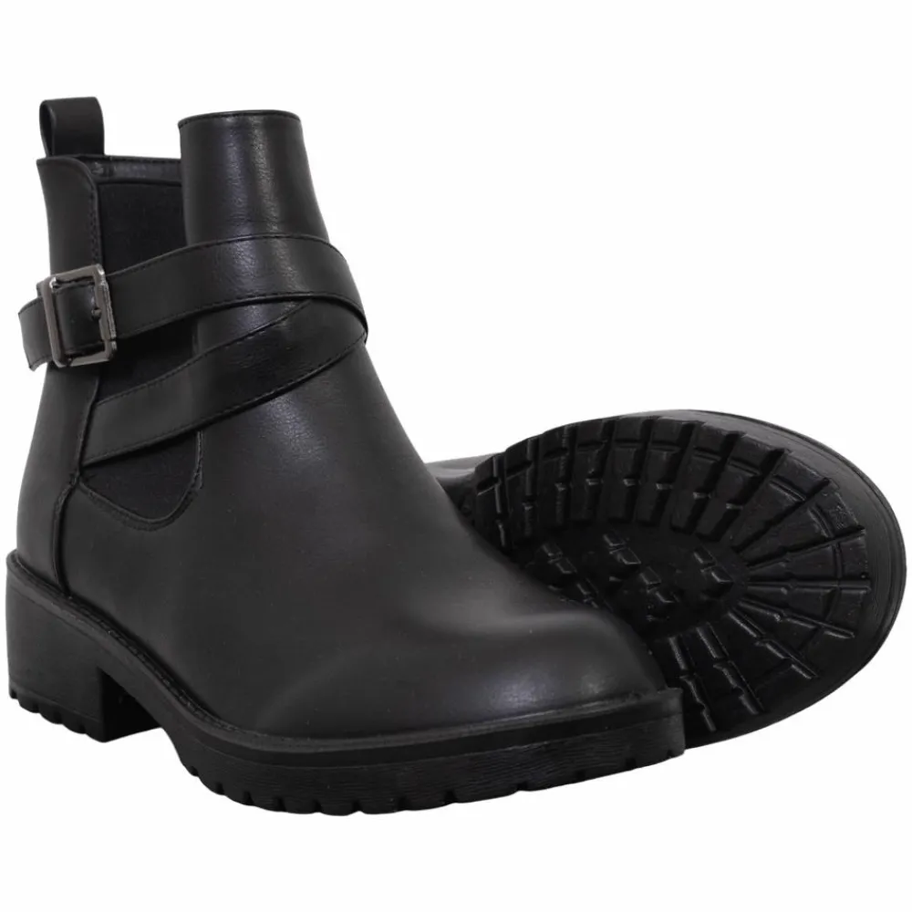 Smarte klassiske dame ankelstøvler i et tidsløst design. Støvlerne er udstyret med en justérbar rem og et stilfuldt spænde. Støvlerne har en praktisk lynlås i siden, en robust og skridsikker sål og en behagelig pasform. Damestøvlerne er det perfekte valg til både hverdag og festlige lejligheder.