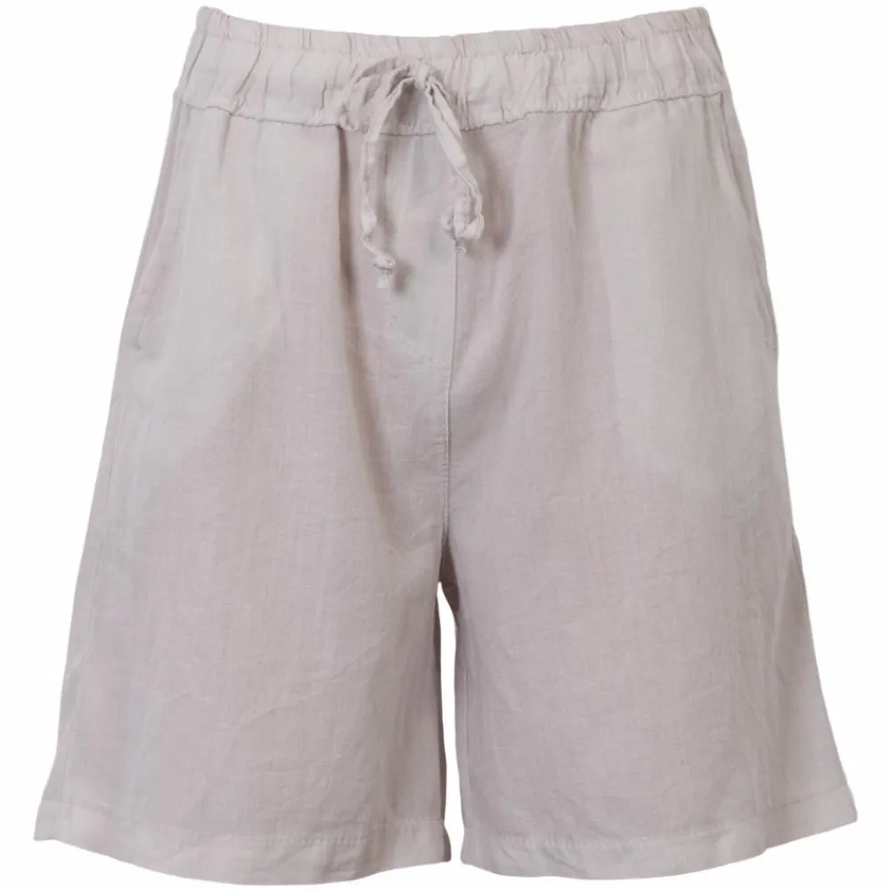 Dame plus size shorts i hør med to lommer samt elastik og bindebånd i linningen.